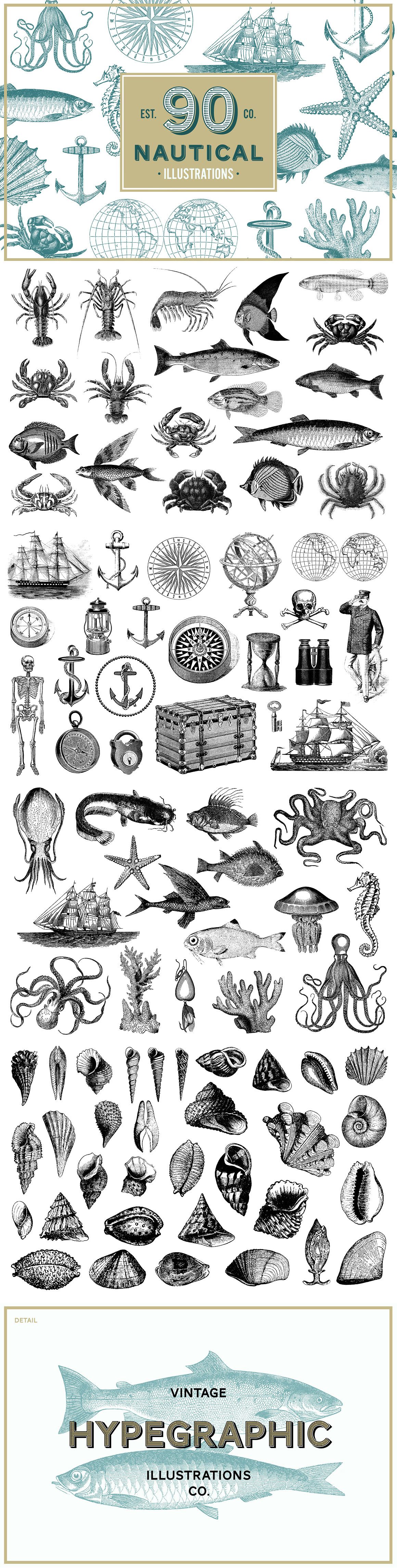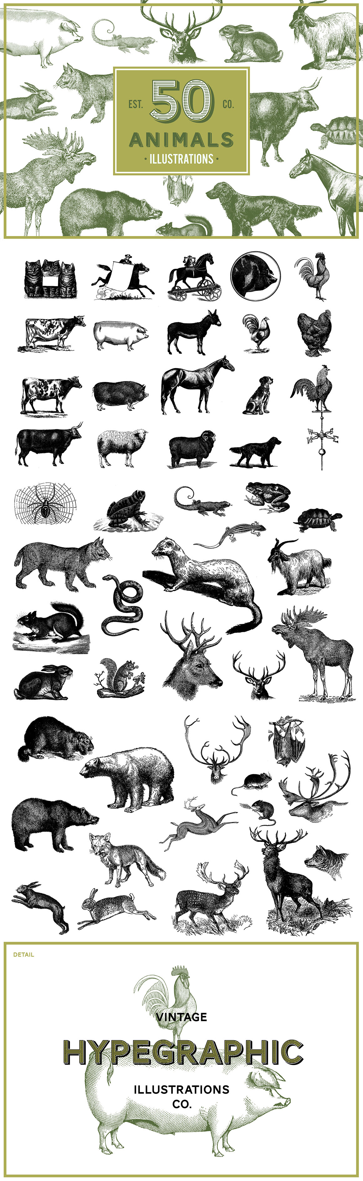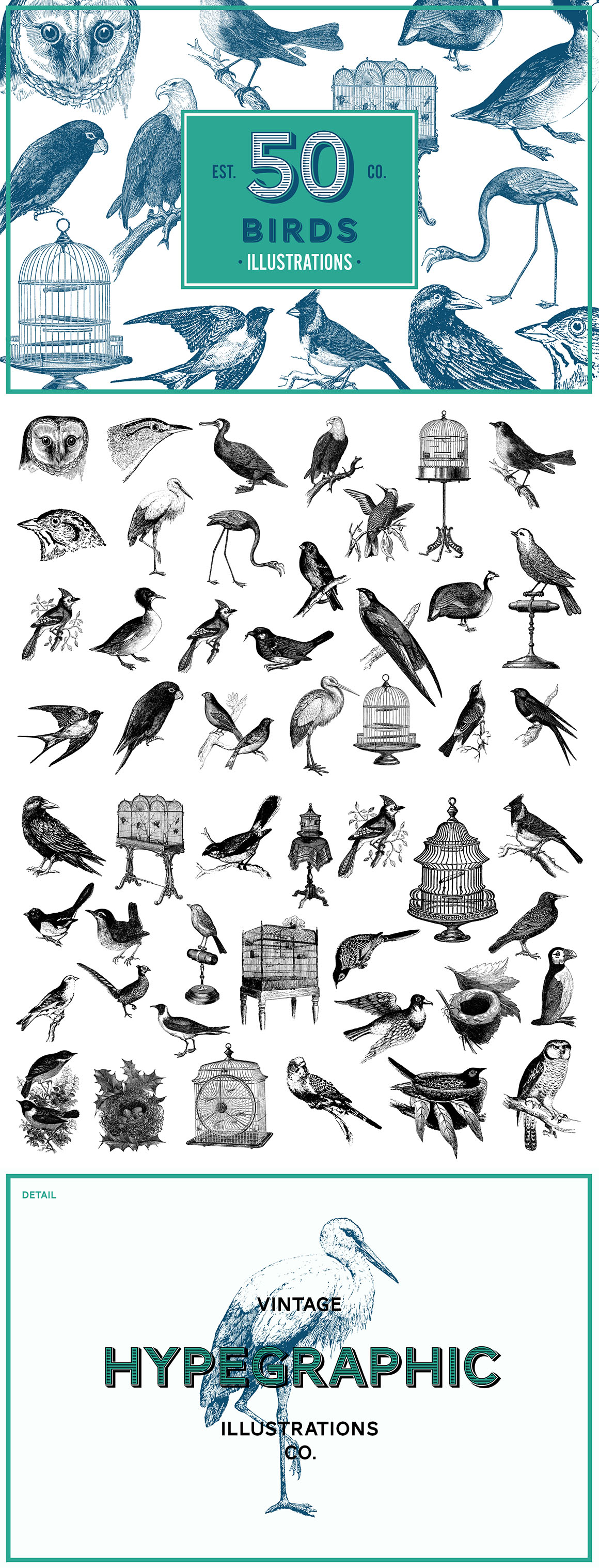 All these beautiful vintage illustrations are from hypegraphic. You can mix, cut, color change – just play with all these vector images and create amazing and unique designs! 😉