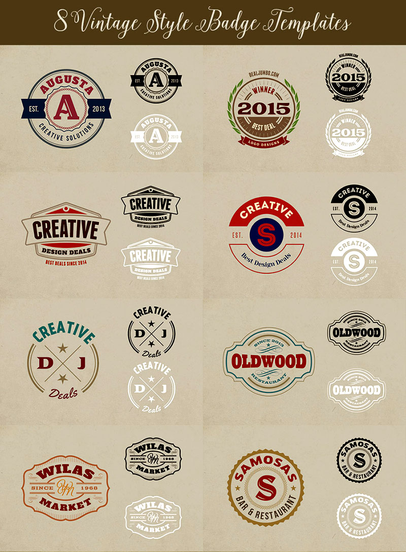 8 cool retro/vinatge style badges or logos from Cruzine Design. All 8 badges are layered and from resizable shapes. Download and enjoy 😉