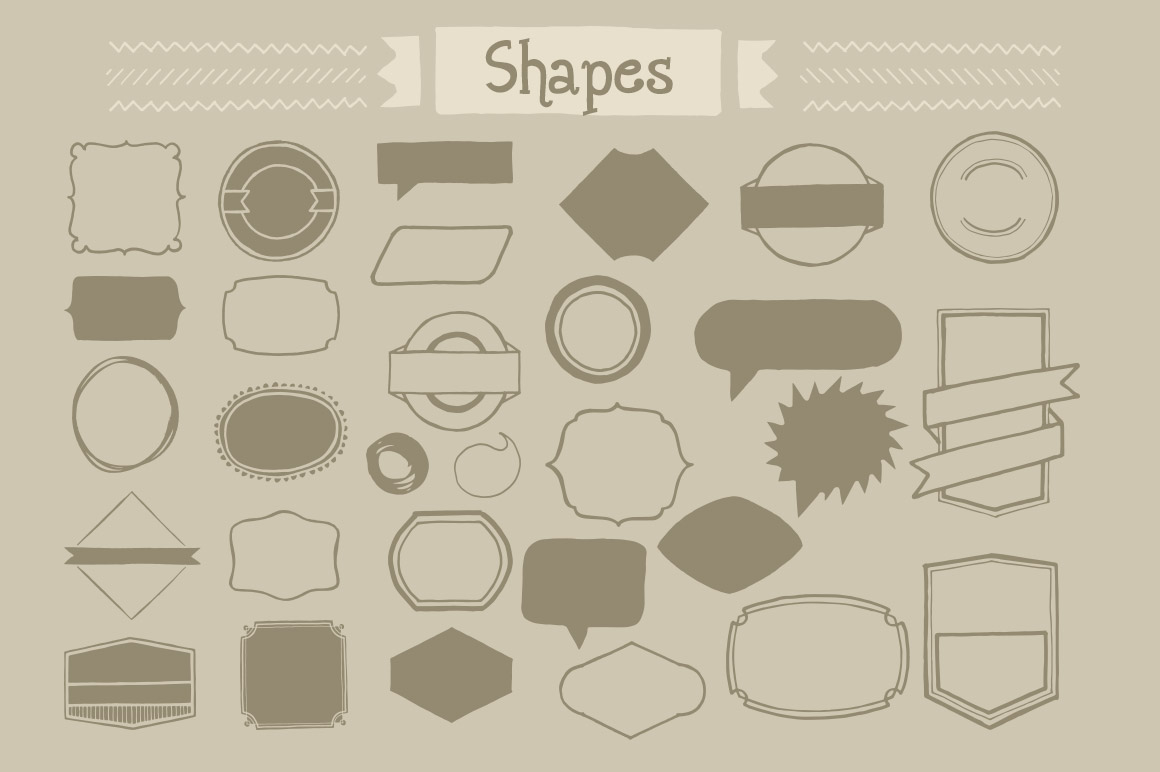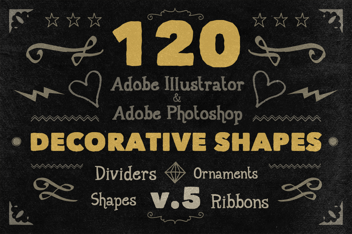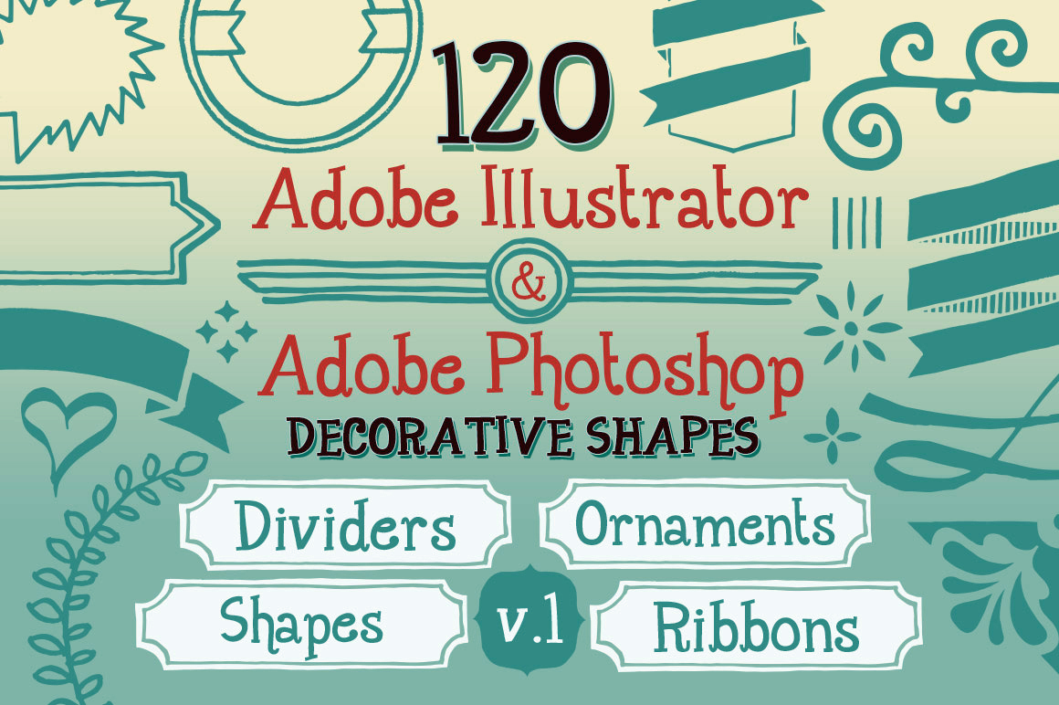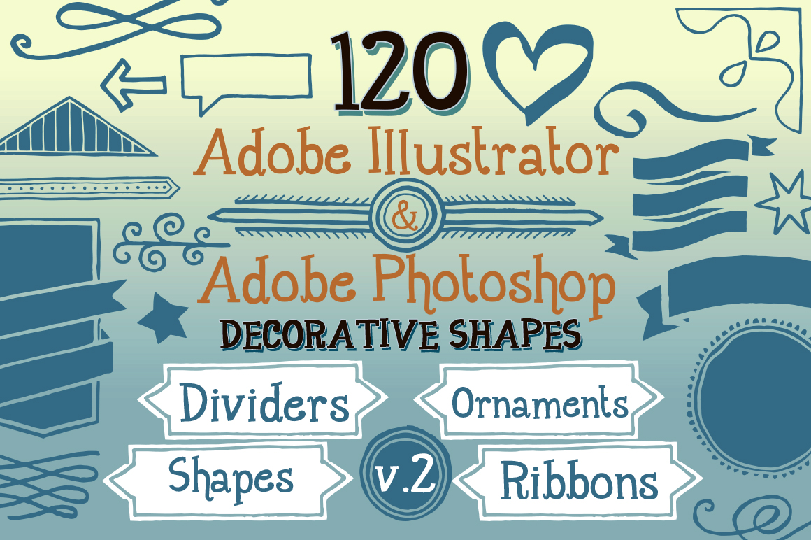 120 handwritten decorative vector shapes in Adobe Illustrator and Adobe Photoshop (resizable shapes). Shapes like ribbons, dividers, ornaments and corners. Great for your print or web designs. Enjoy 😉