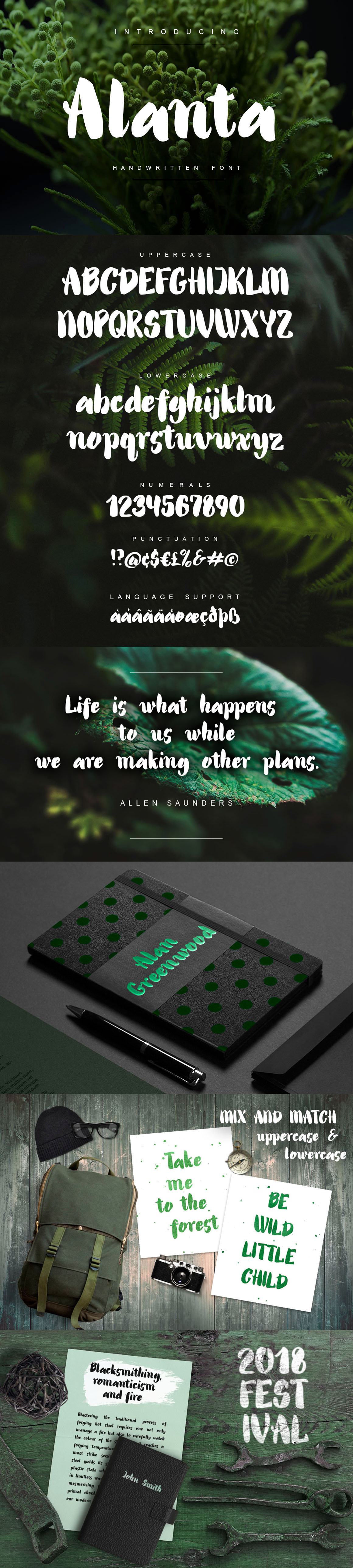 Alanta font was hand written with brushpen and will look great on branding design, posters, apparel, for logotype, website header, fashion design and any more.