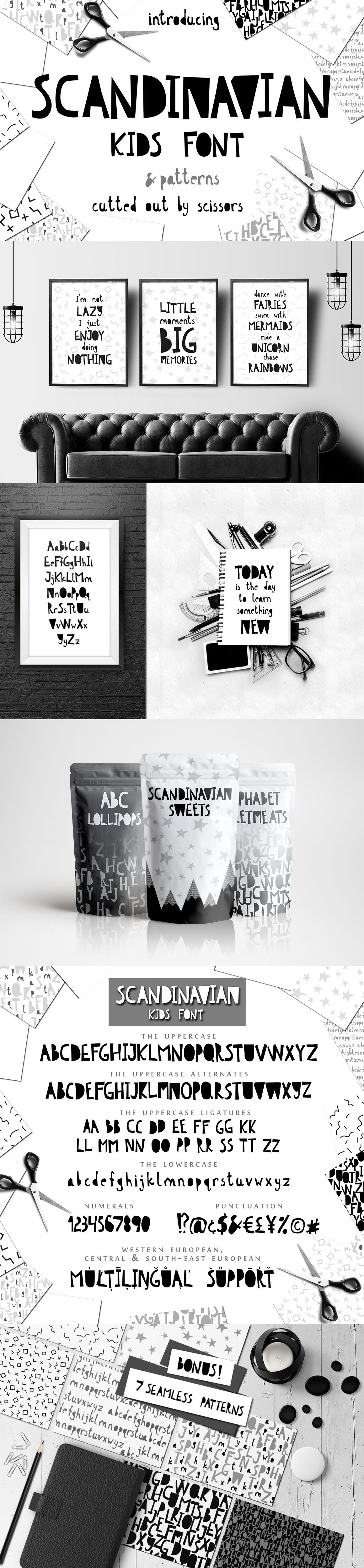 - As BONUS to Scandinavian kids font I added 7 monochrome seamless patterns that help to make your scandinavian design perfect.