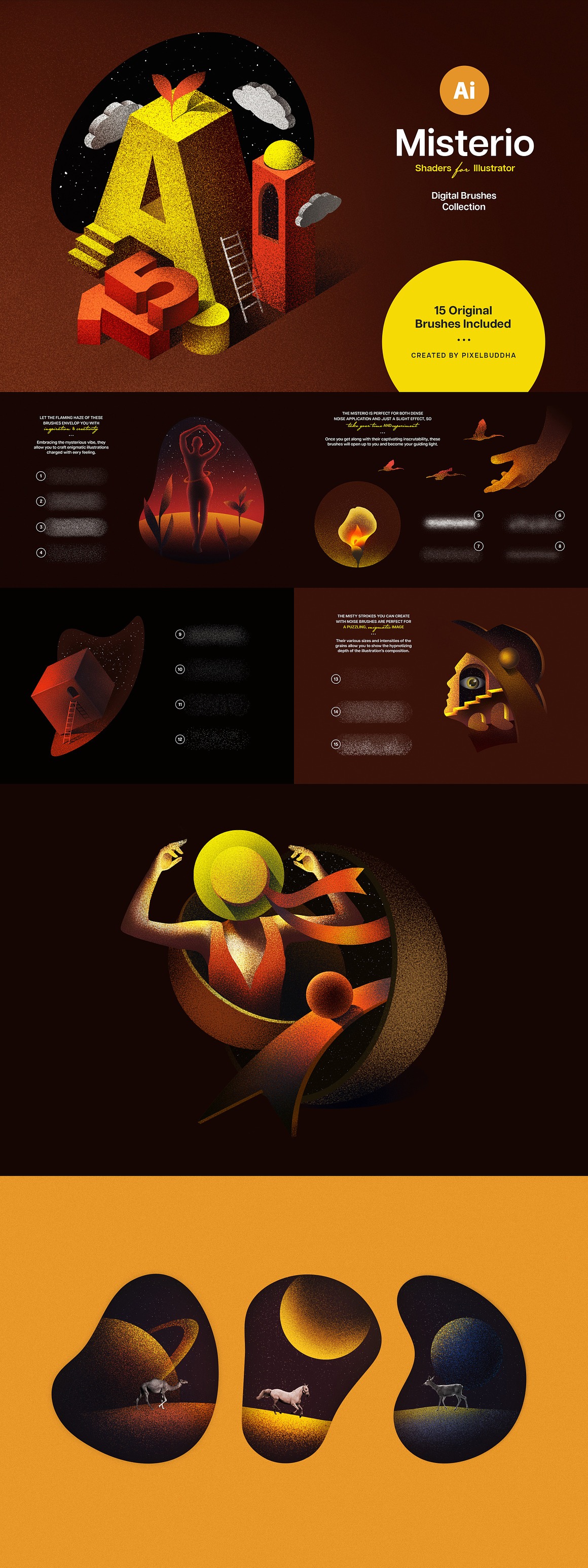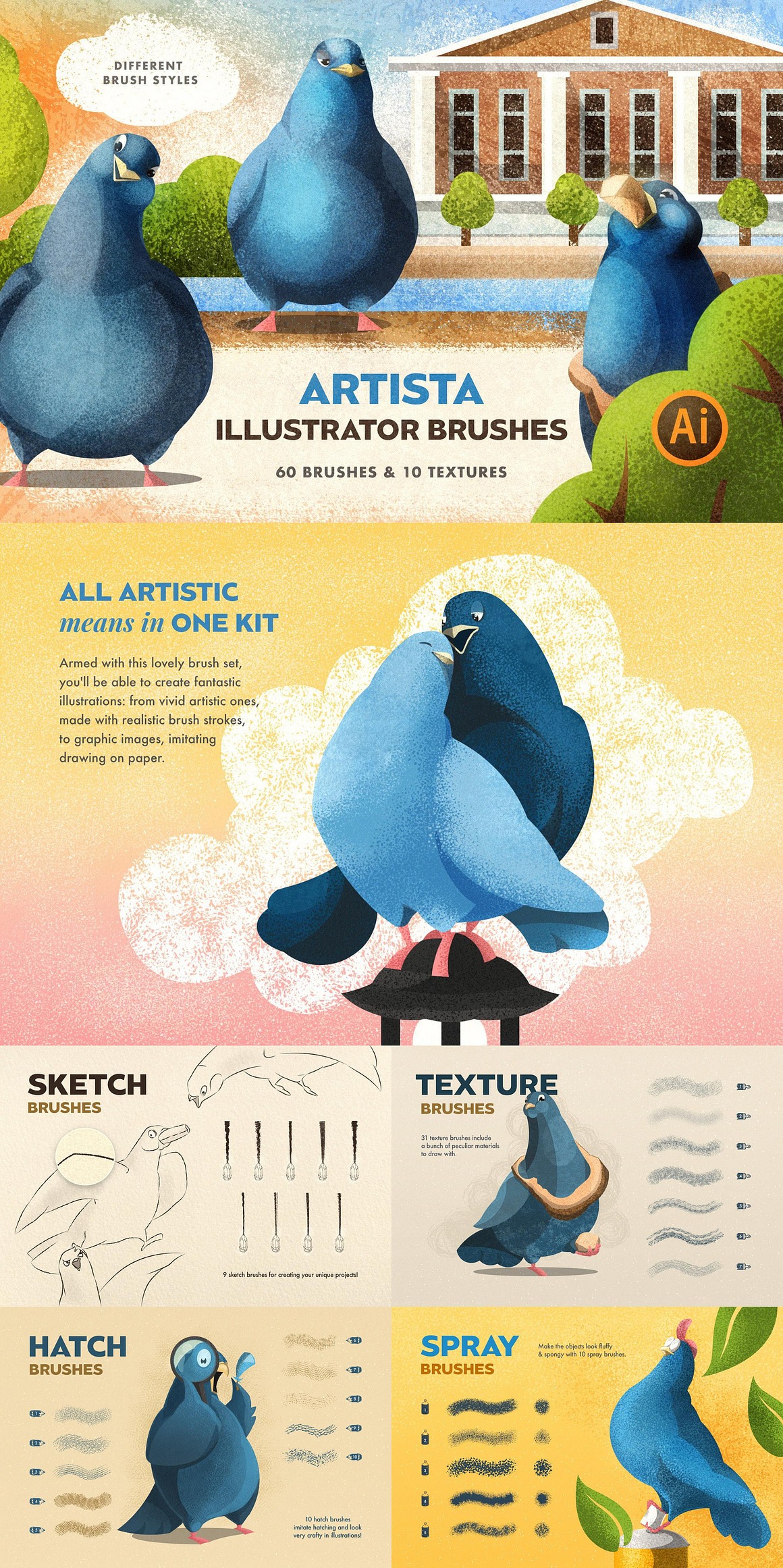 With 9 in 1 Illustrator Brushes Bundle from Pixelbuddha you will get 9 various artistic style brush sets for Adobe Illustrator!