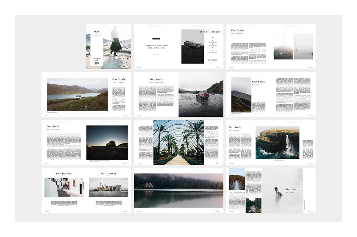 Blog magazine is a minimalist travelling magazine with 32 print page, a very clean, simple and readable layout, neat typography, and 3 alternative cover design bonus. This template has been arranged specifically detailed with grid, seprated layer, and paragraph + character styles. Use Blog Magazine template, replace the content with your own and either send it to print set up to print with standard size or save it as a pdf for the client. (all instructions included on mainfiles)