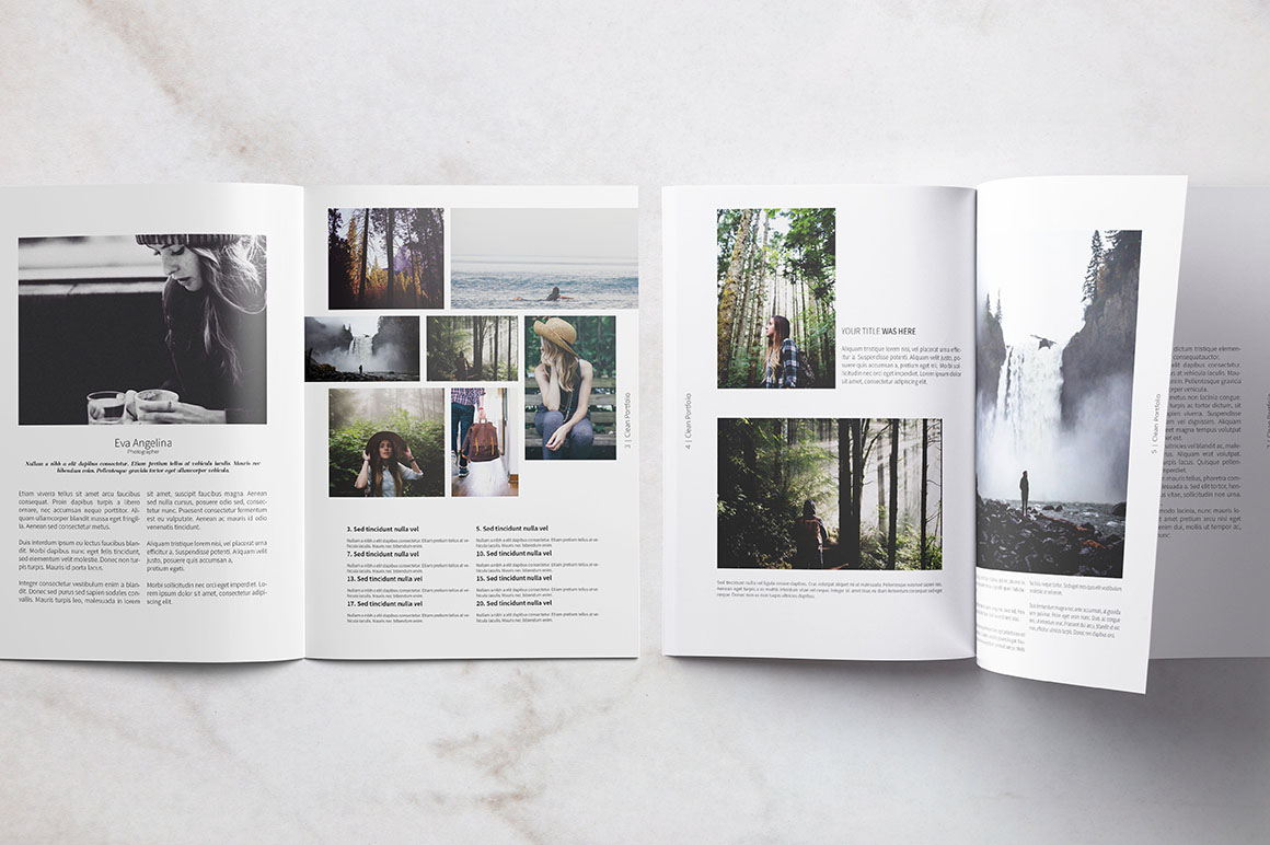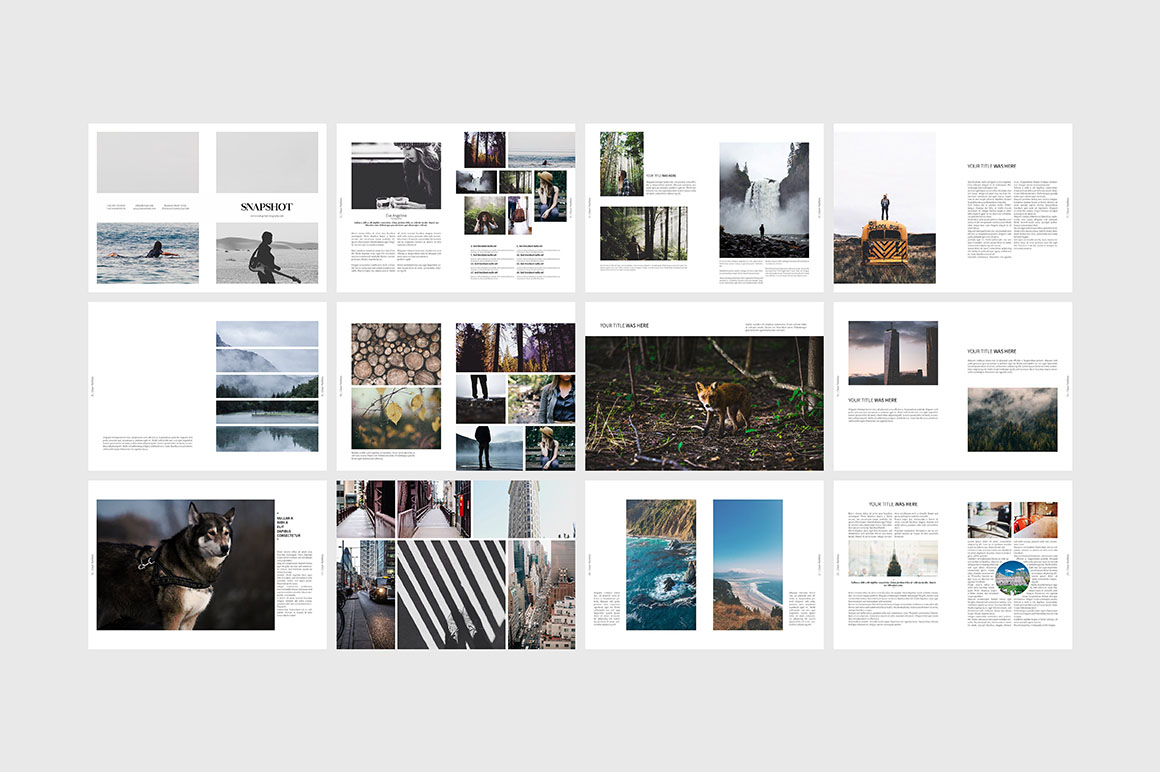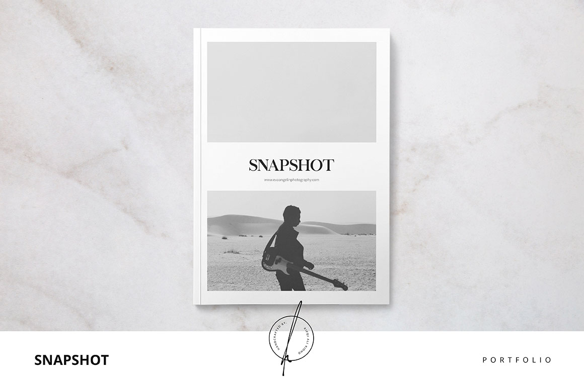 Snapshot Portfolio is amazing photography portfolio with 24 pages. This Is for publication magazine, portfolio, photography, and more. With borh size A4 & US Letter size. There are unique spread for your publication and easy to change with your own color pallete, work with master page to make automatic numbering and minimal layout for project. Print ready or export as a pdf. Simply replace the logo, texts and brand colors with color pallete.