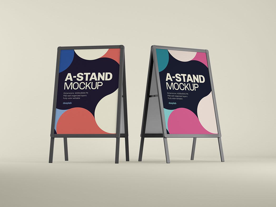 3 FREE A-stand banner or billboard – presentation or branding mock-up template from Deep Lab. Download and enjoy 😉