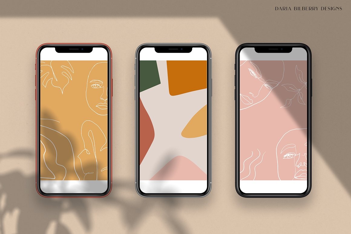 Monoline Dreamer Illustration is a great technique for creating really modern, minimalistic illustrations that can be used for a wide variety of applications. Monoline Dreamer design set filled with individual design elements, moonline faces, leaves, social media cards, seamless pattern, abstract splashes and more.