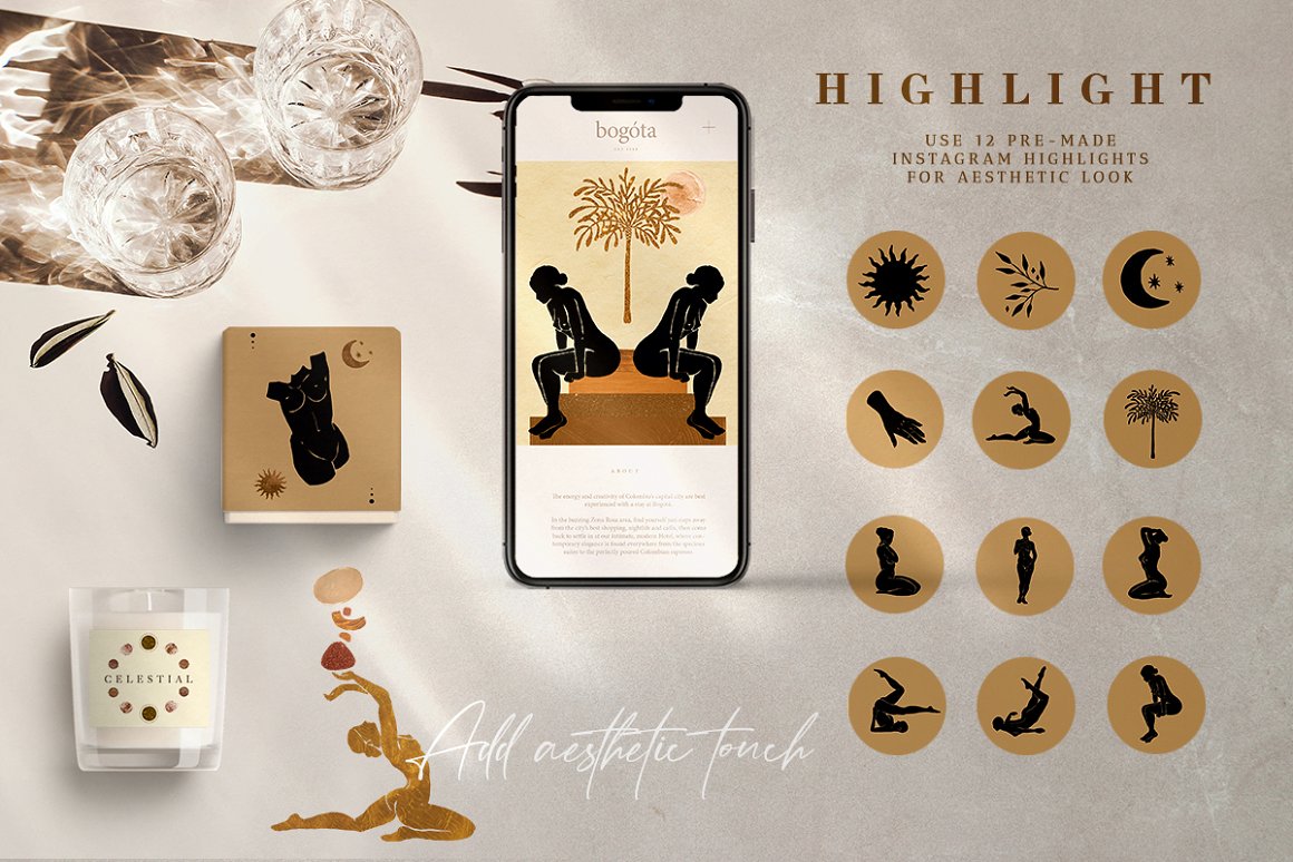 - 30 Templates for Instagram (pre-made highlights, stories and posts)