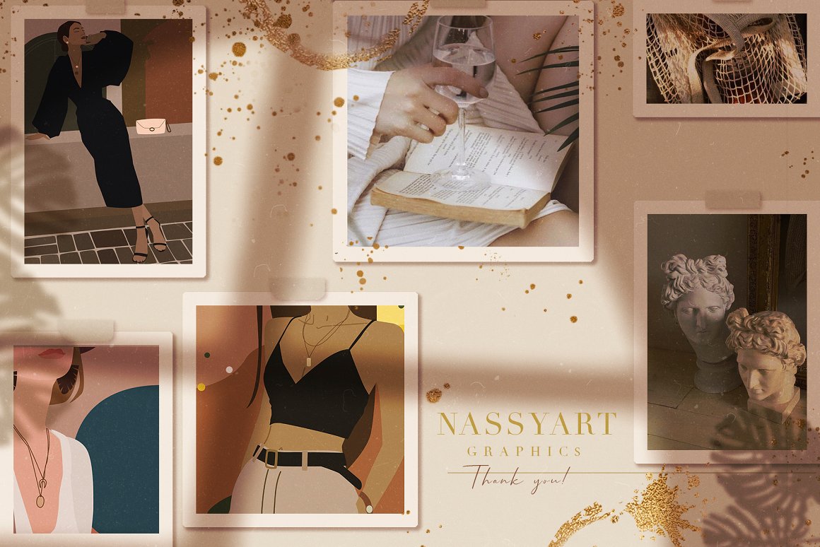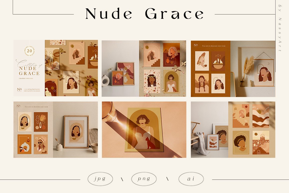 Nude Grace Modern Vector Set – Decorate your wall with this collection of modern&fashion postcards, use them for posts in Instagram and your projects. Use these elements to create your own unique Instagram account design or branding. You just need to select card and crop it, combine other provided items or add a quote on the empty space. And the personal card will be ready! In this pack, you can find a variety of fashionable arts and abstract modern illustrations. They are available to mix and match for design projects with endless composition combinations of all pieces. These elements are ideal for the creation of printed products: notebooks, invitations, personal postcards, branding identity and Instagram posts. Add these beautiful vector graphics to create your own interesting profile, branding style, send cards to your best friends, present for someone important or decorate your working place with the wall posters.