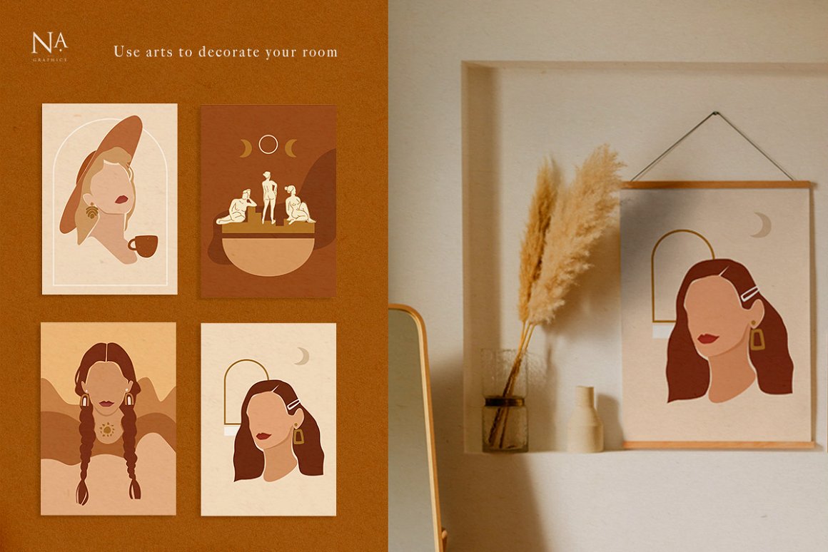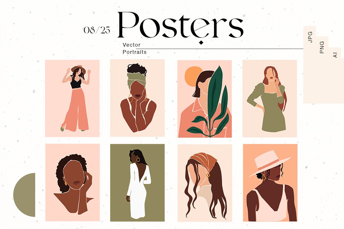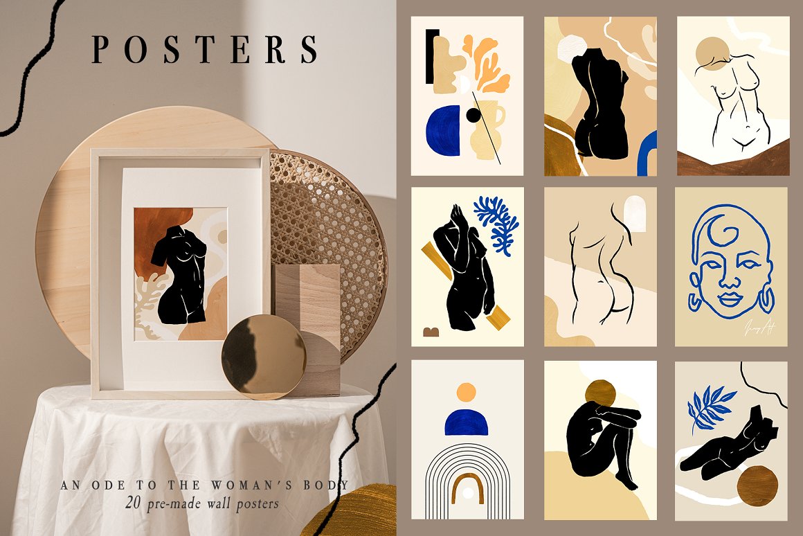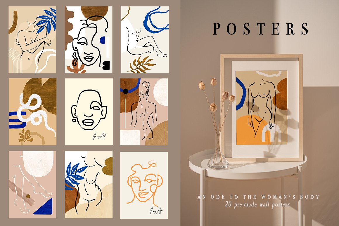 Abstract Woman Posters Bundle 13 in 1 – Carefully painted 325 Unique Posters without any duplications or similar designs! are you searching for wall arts and posters for start your small business? Or you want to decorate your living room? Maybe you want to open a shop with different trendy minimalistic prints? Hey! This bundle is totally for you! Start creating or developing your own brand right now! Create a variety of products with this set of 325 ready-to-use Posters design or mix and match elements for your own! The Possibilities Are Endless✦