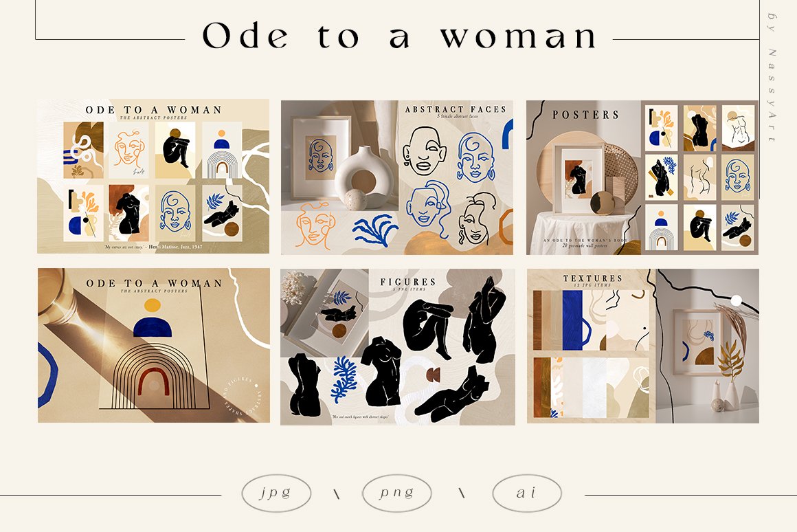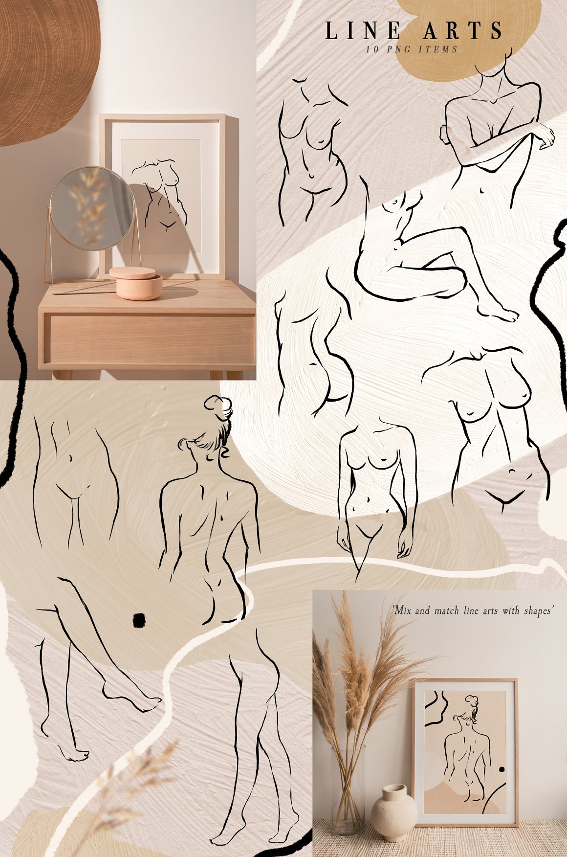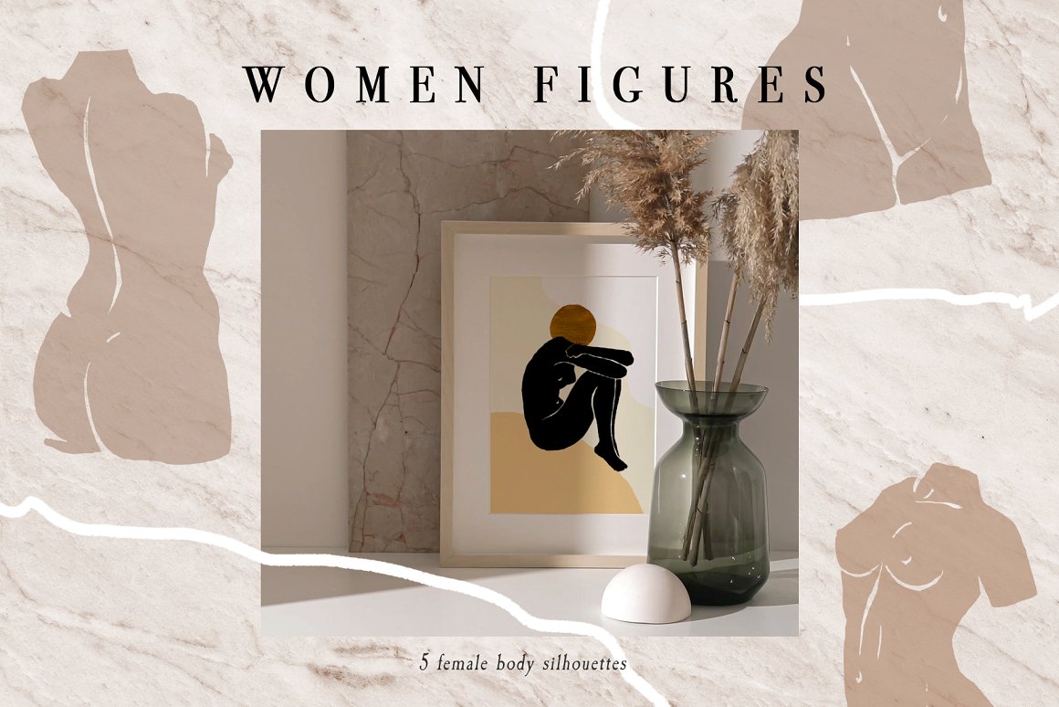 ☾○ Ode to a woman – delicate collection made with patience and love! You can create your own compositions using modern abstract shapes, handmade textures, line arts and silhouettes of a female figure! Be inspired by work of Matisse, Picasso and Gauguin. Also you can use pre-made Printable A4 Postcards for decorating your workplace or living room wall. Create your business postcards with this creative modern Set!