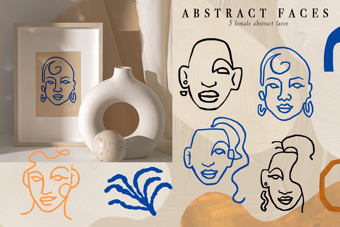 - Abstract Nude, Face and Flora Elements (1 Vector .Ai and PNG Artboard with all elements – 5000×4800 px, 300 dpi)