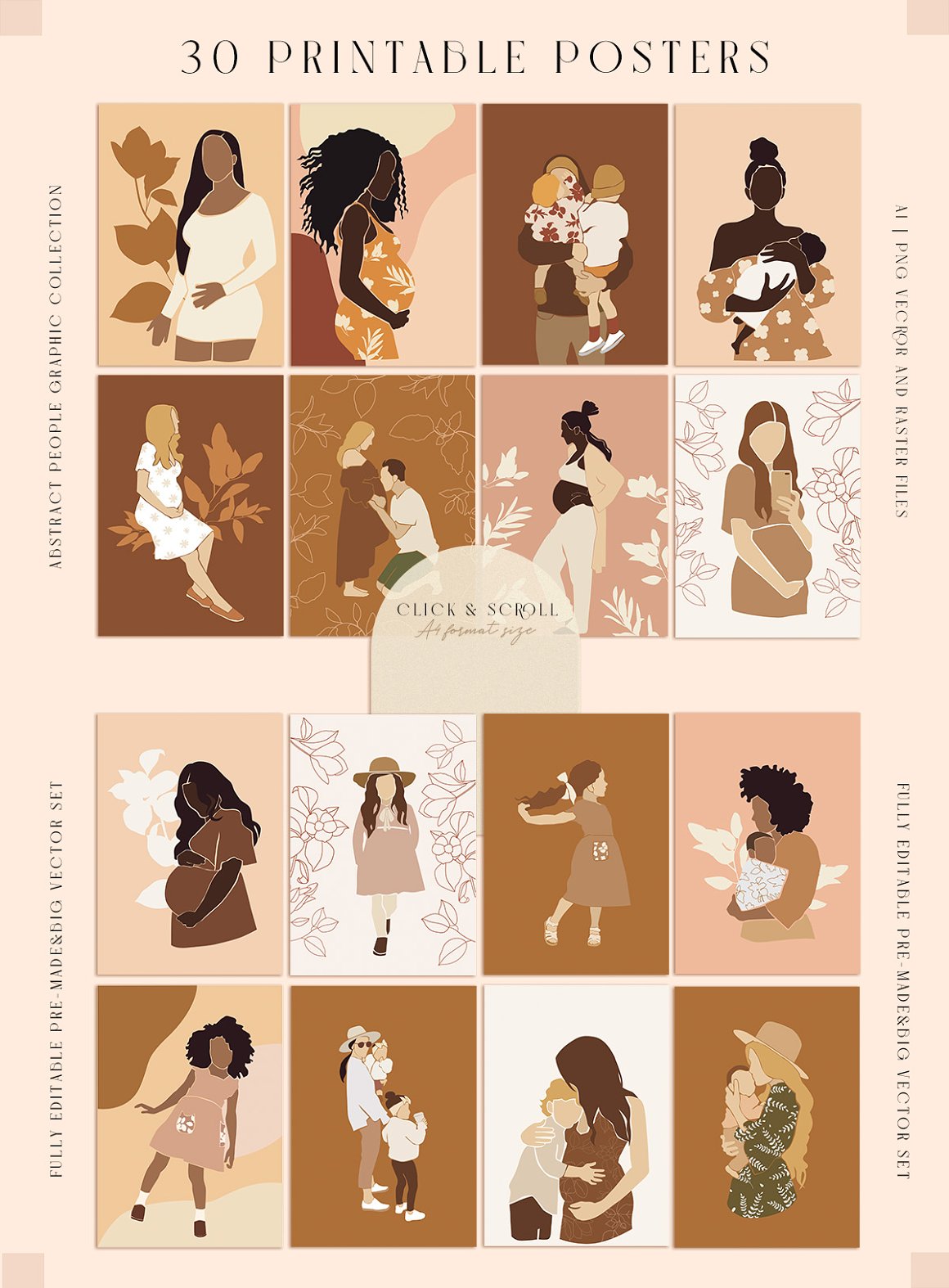 Abstract Family Mother Baby Kid Blog – it’s a big collection of instagram pre-made stories, highlights, printable posters, clip arts and vector editable files. You can mix elements, change sizes or use png with isolated background for your creative ideas, projects, social media and invitations. Create your business with trendy vector illustrations, add unique touch to your ideas.