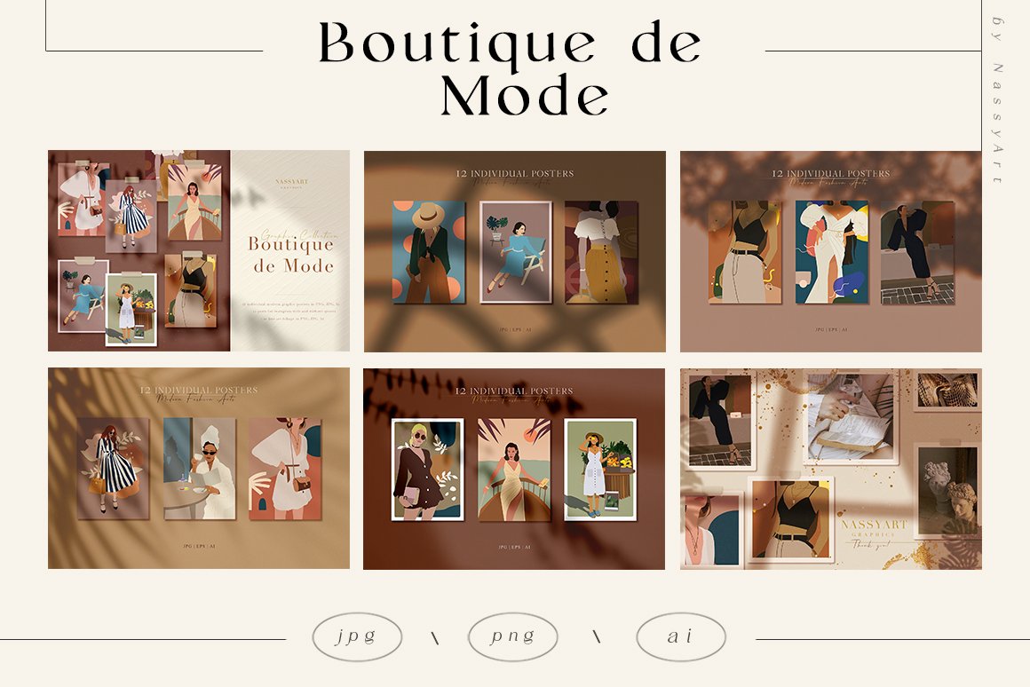 Boutique de Mode – Decorate your wall with this collection of modern&fashion posters, use pre-made posts for instagram. Use these elements to create your own unique instagram account design. You just need to select poster and crop it, combine other provided items such foliage and write quote on the empty space. And creative account will be ready! In this pack, you can find a variety of fashionable artboards and posts. They are available to mix and match for design projects with endless composition combinations of all pieces. These elements are ideal for the creation of printed products: notebooks, invitations, wallpaper, cards and instagram posts. Add this beautiful vector graphics to create your own interesting profile or decorate your working place with the wall posters.