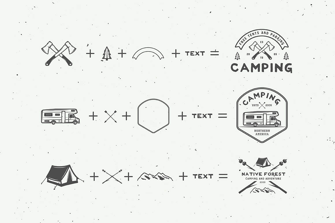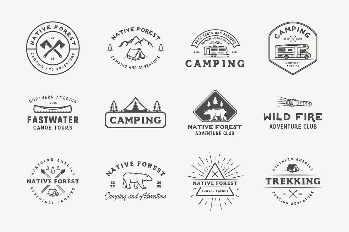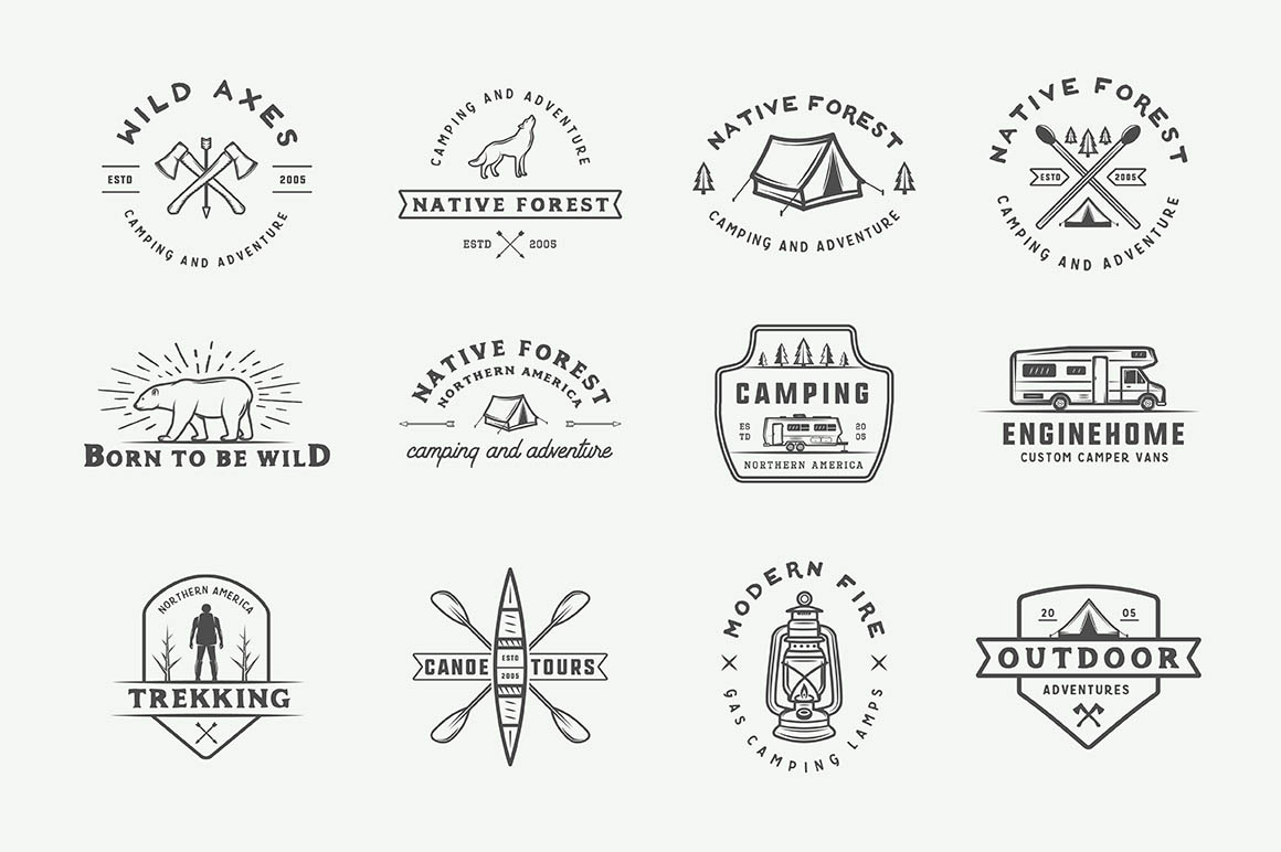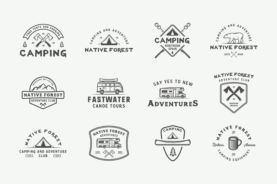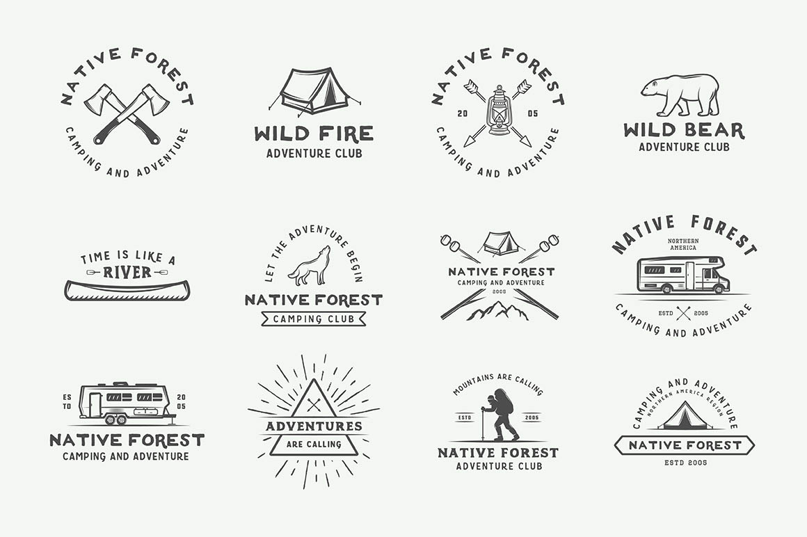 If you don’t have the time and budget to create a custom logo, this unique logo bundle is just for you! Bundle features lot of professional logo templates & elements in retro or vintage style from AkimD with adventure, camping or travel theme.