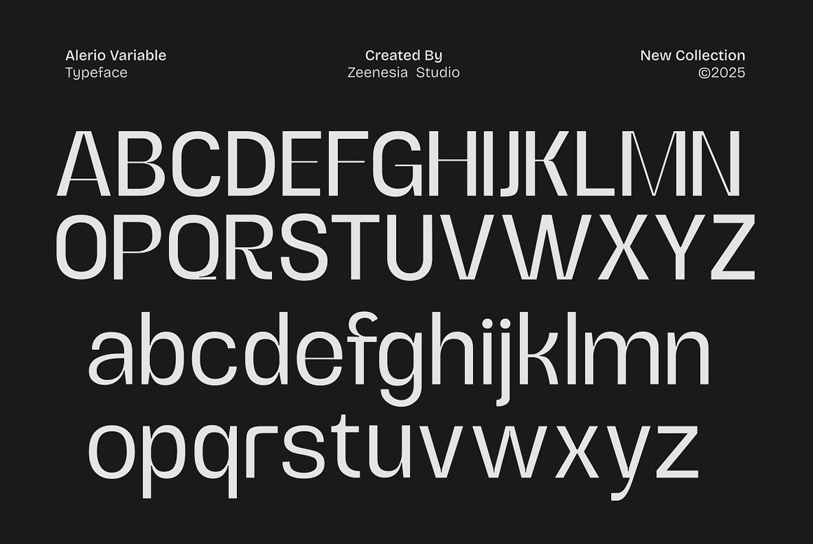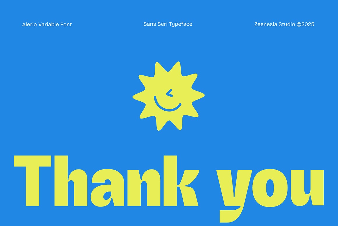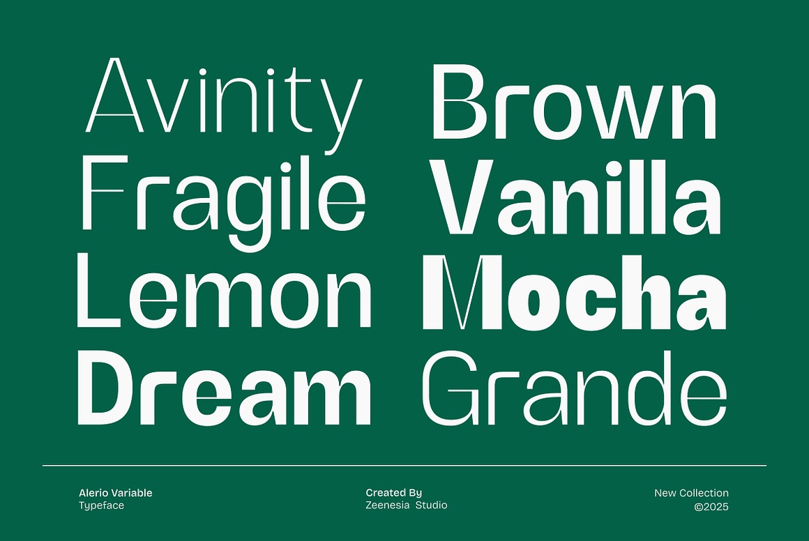 Say hello to Alerio – A modern sans serif that’s bold, flexible, and full of fun! Alerio is a bold and versatile sans serif typeface designed to bring clarity, strength, and modern charm to any design. With a full range of weights from Thin to Black, Alerio adapts seamlessly to different creative needs—whether for branding, editorial design, digital interfaces, or striking display headlines. With its clean shapes and smooth curves, Alerio feels fresh and easy to read, but also brings a cheerful personality to your design. The variable font format allows for smooth flexibility, giving designers complete control over weight and expression in typography. Alerio is here to make your work shine brighter!