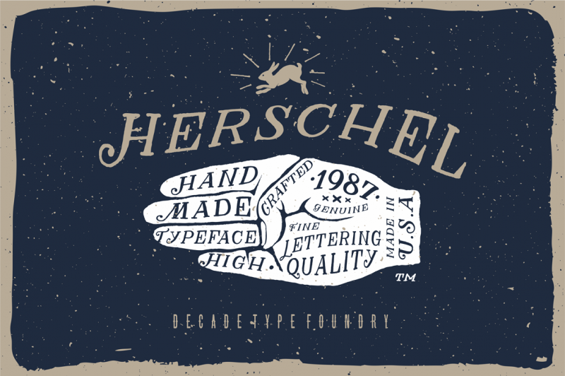 Herschel is a unique hand drawn serif. Inspired by the natural imperfections that occur in traditional sign writing. Herschel introduces an element of the human touch with this mildly wobbly yet elegant font. You can use Herschel in any setting; children’s books, beer labels, organic food packages, menus…the sky is your limit !