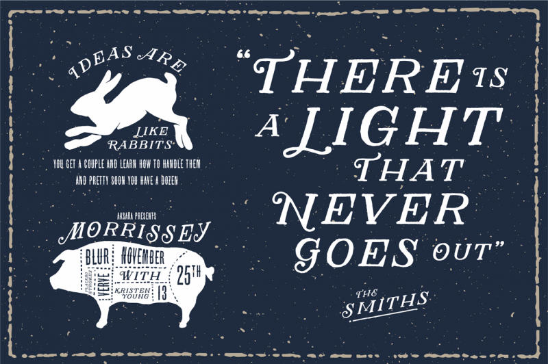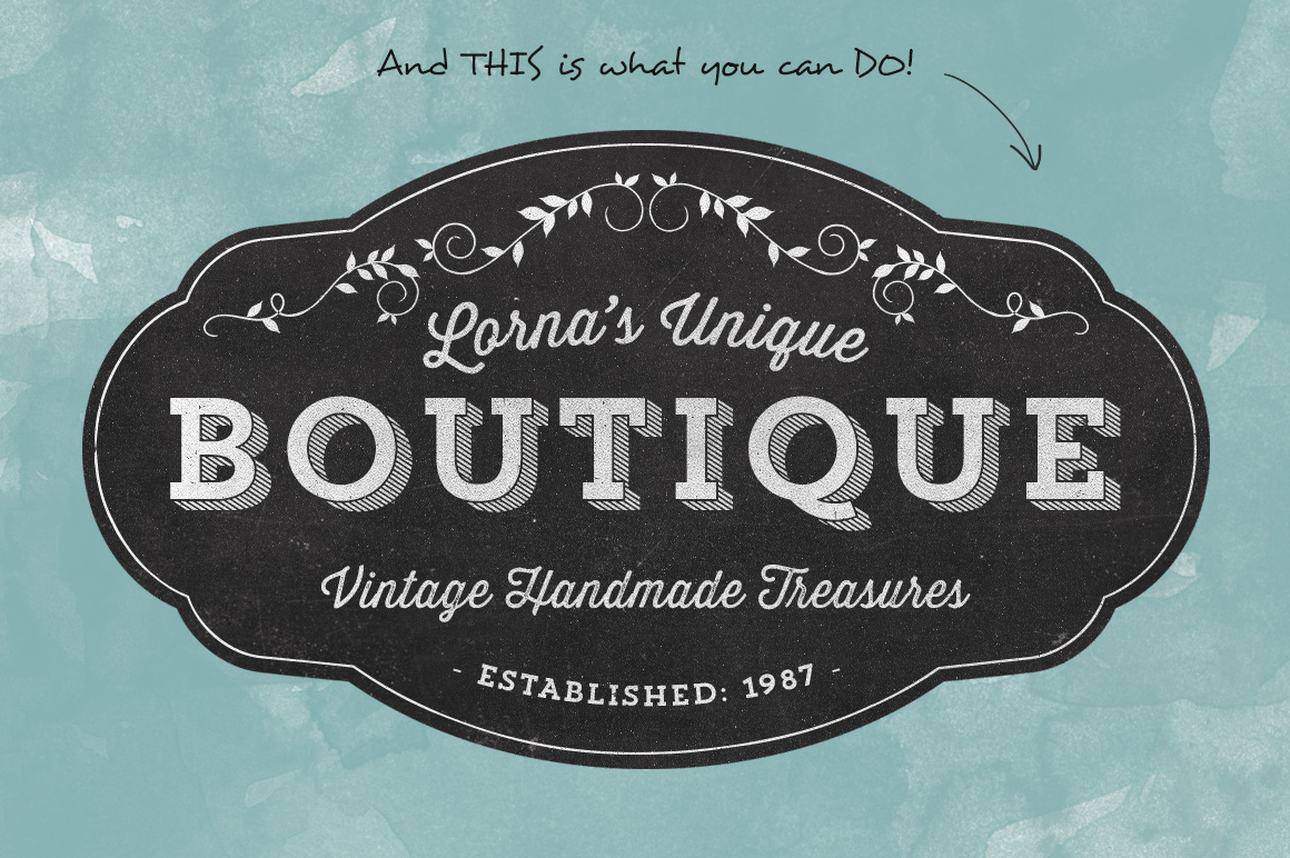 Wear is was a font created to enhance the creation of badge work. That was its starting purpose. I then realized that Wear works well in a number if design situations and is especially interesting when paired with textures. This font has a hidden surprise for whom ever may purchase it.