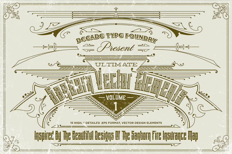 Royalty-free vector set inspired by the beautiful designs of the Sanborn Fire Insurance Map, Download includes: 15 highly detailed .eps, .ai & .pdf format.