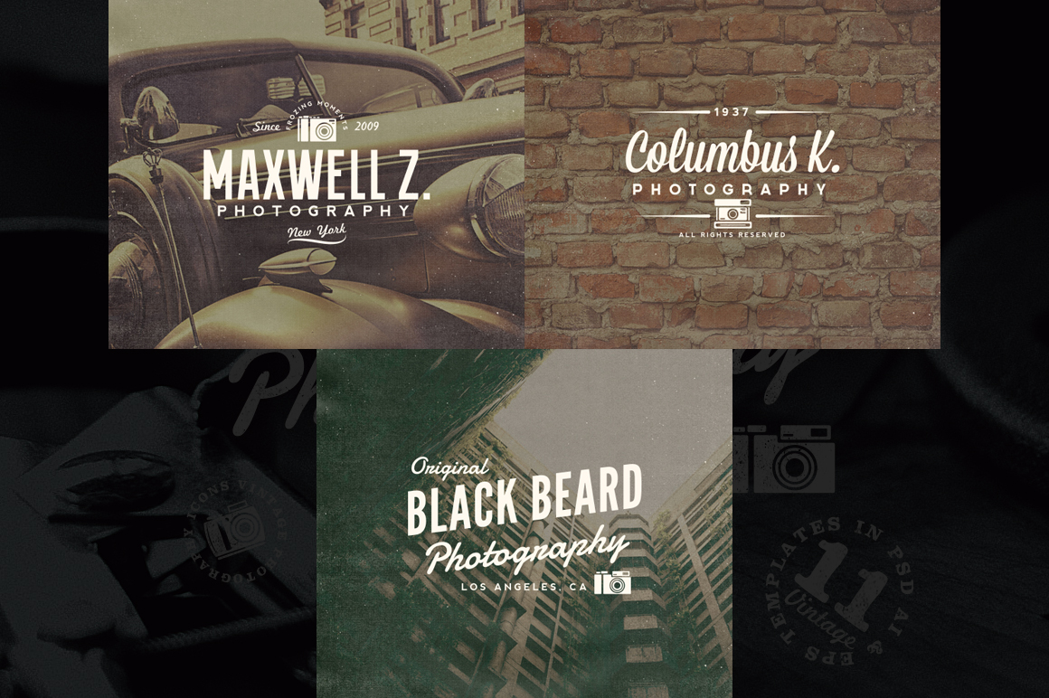 Here’s a set of 11 photographer vintage logos which can be used as your logos, labels, badges, watermark and other identity and branding materials. Brand your photography projects with these retro style logos and it’ll bring out a strong branding presence and vintage handcrafted impression.