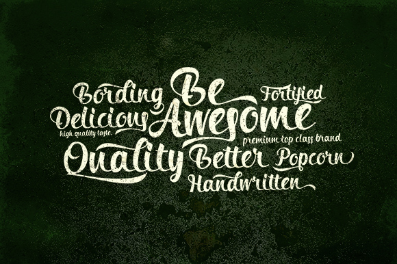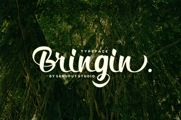 Bringin is informal script lettering font with a bunch of alternative characters to choose. Bringin uses OpenType feature such as swash, ligature and alternates that can be found by using OpenType savvy program such as Adobe Illustrator and Adobe InDesign.