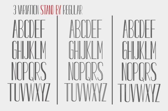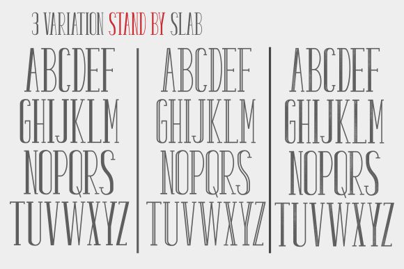 Stand By is a condensed slab display typeface. It’s strong appearance will be useful when creating commanding titles and headlines that demand attention. Stand By is a slightly condensed face, but has the thickness to provide all the stability you need.
