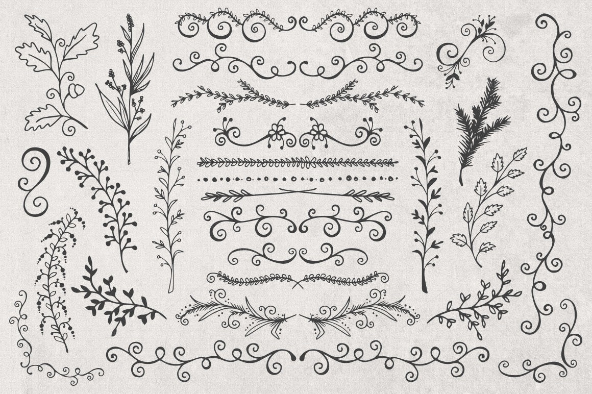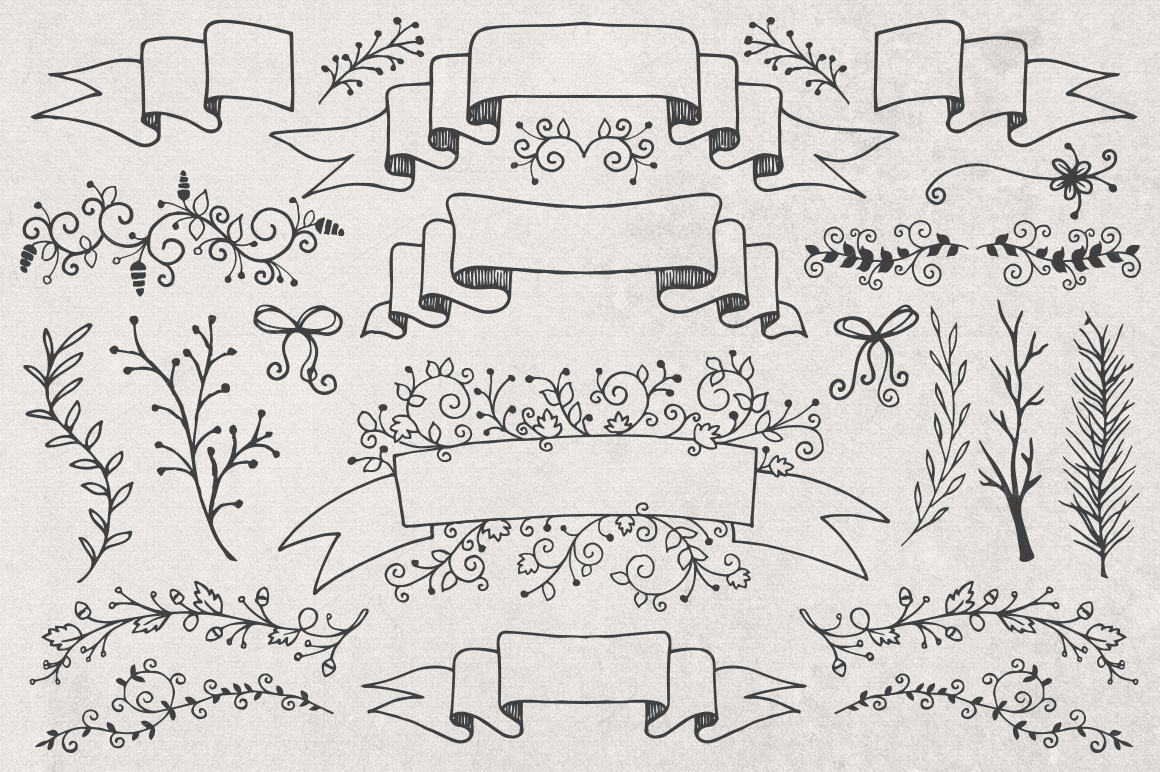 This vector pack of banners, branches, leaves and other design elements is perfect for adding a hand-drawn look to your next project! Use them just as you see them, or group and layer elements to create new ornaments. Everything in this pack was hand-doodled on paper, traced, scanned, cleaned up in Photoshop and then vectorized to give it an authentic look.