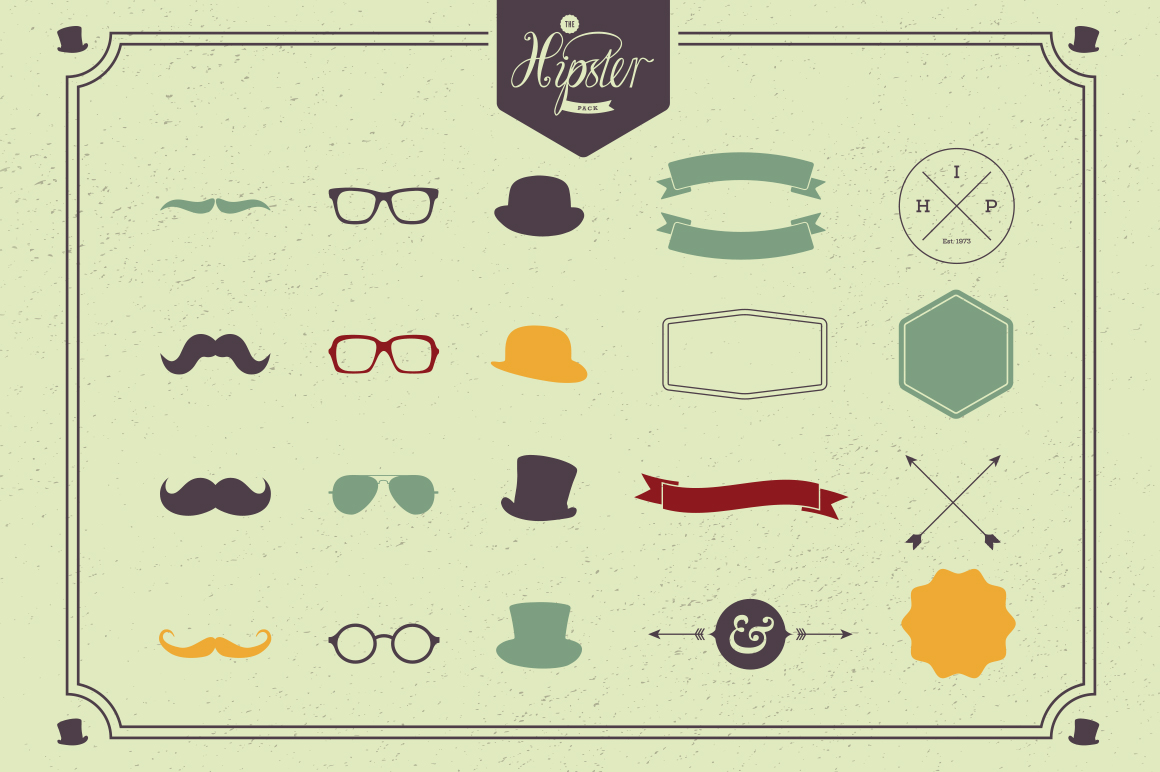 Selection of Hipster elements in vector eps format. Use them to make your own vintage logos, badges, signs, etc.