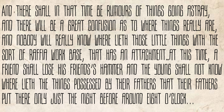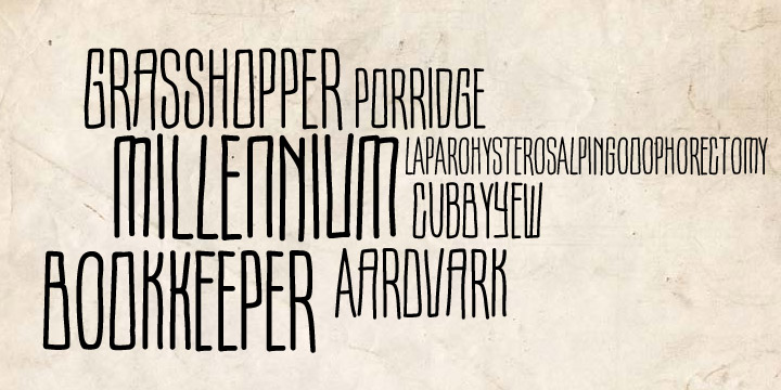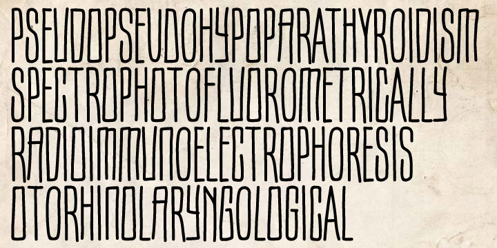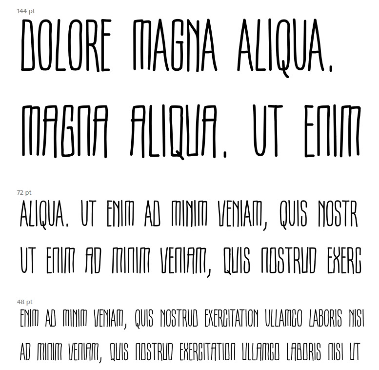 Larsson is a hand-drawn, all-caps, ultra-narrow font created by Bartek Nowak. It contains two variations for each letter and a lot of ligatures. Use for invitations, greeting cards, posters, advertising, weddings, books, menus etc. Language support includes Western, Central and Eastern European character sets, as well as Baltic and Turkish languages.