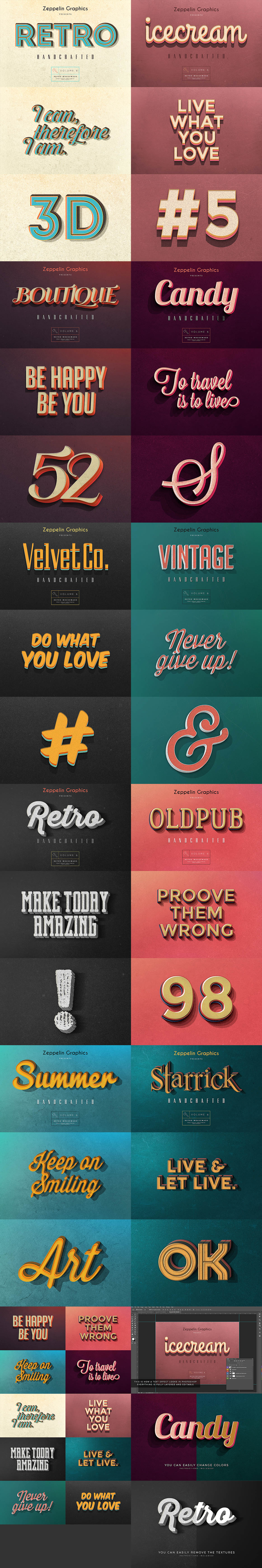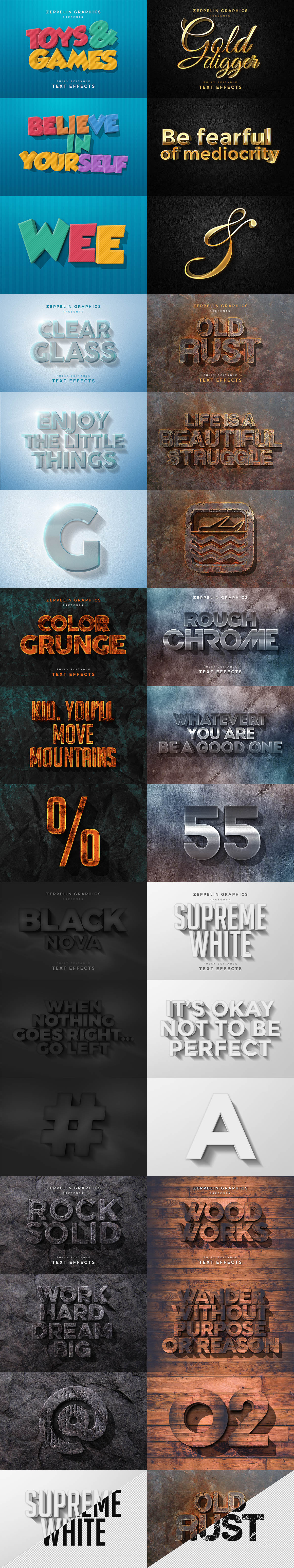 Very easy to use. Replace the text in seconds via smart object layers. See instructions for more info! Works with text, vector shapes or any kind of shape really. Editable text. All fonts used are free to use or free for personal use. The links for the fonts are in the Help file located in the main download. But you can use any fonts you want! We improved a lot of stuff with this new set! The presentation is a lot better and we can show you a lot more examples thanks to the fact that we can upload more than 5 images now. We included a new PDF file with a lot of useful instructions. You will also find preview images in the download and the overall look and quality of the text effects and the graphics is now better.