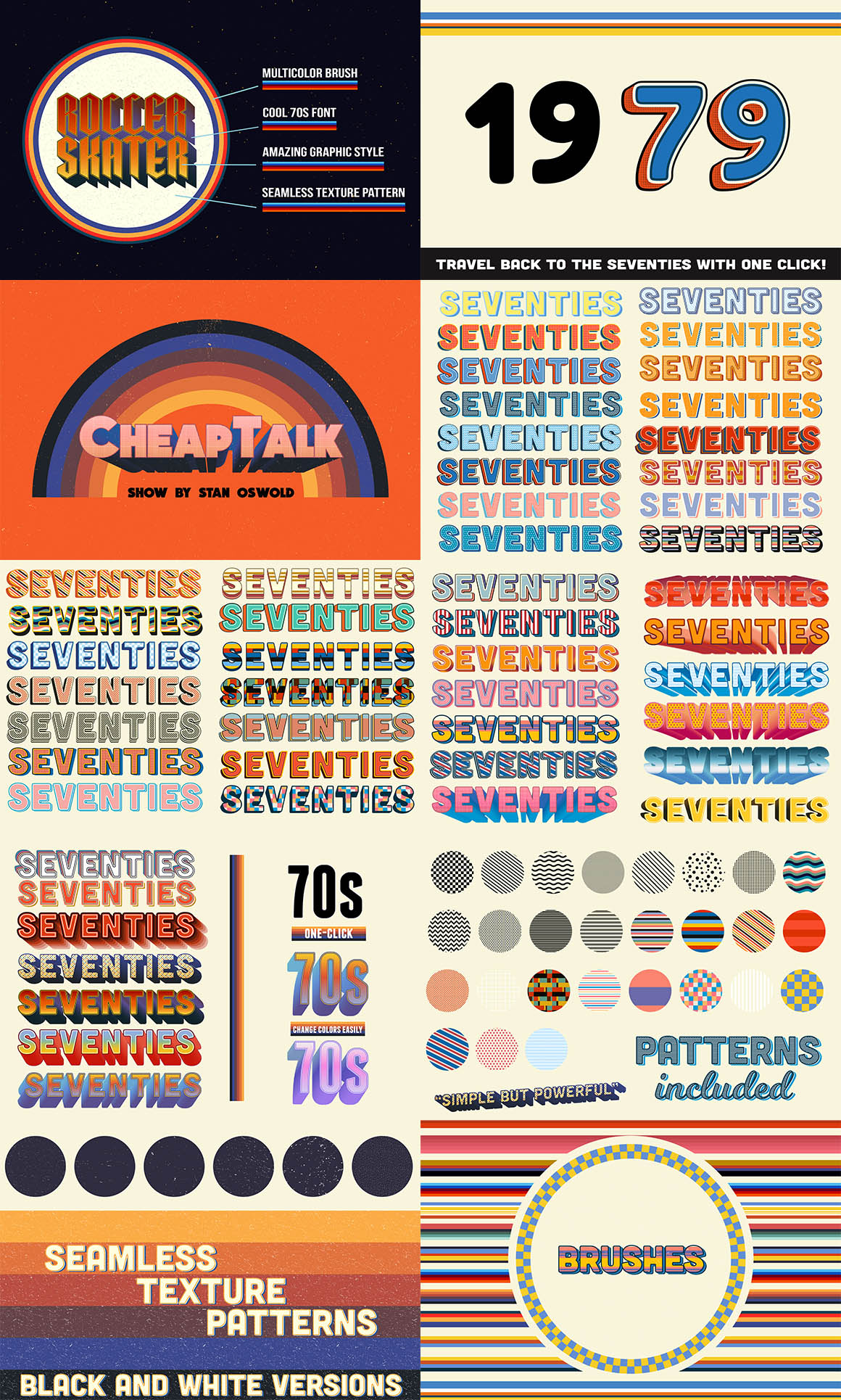 With WESTERN TYPOGRAPHY SALOON you will get instant typography effects, editable within Appearance panel before tracing it finally. You have control over many options, so it allows you create new effects in a short time. For that reason, I will give you 27 seamless texture patterns, so you can replace default ones and try to make your own!