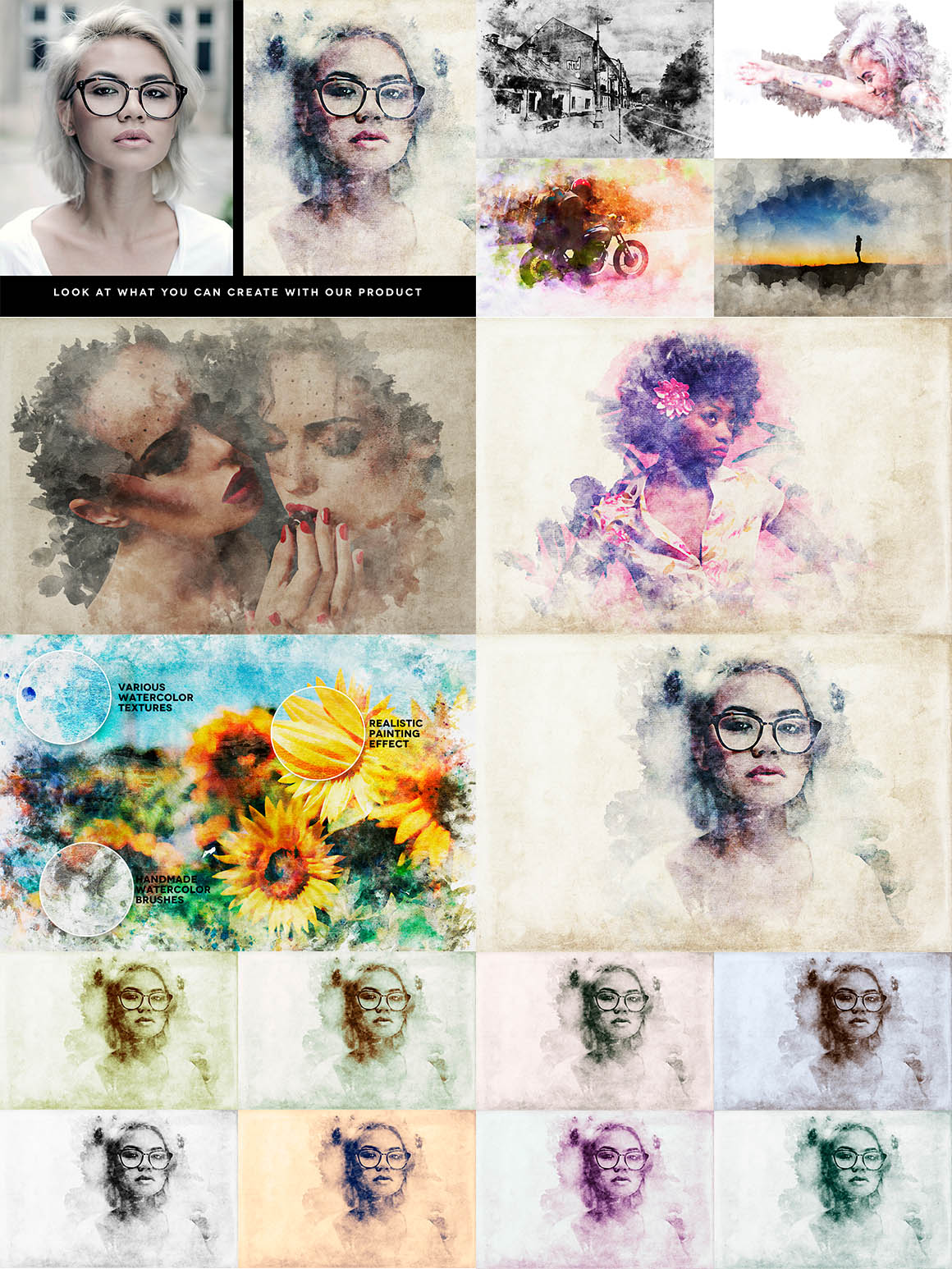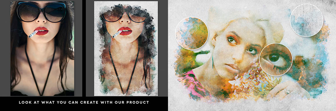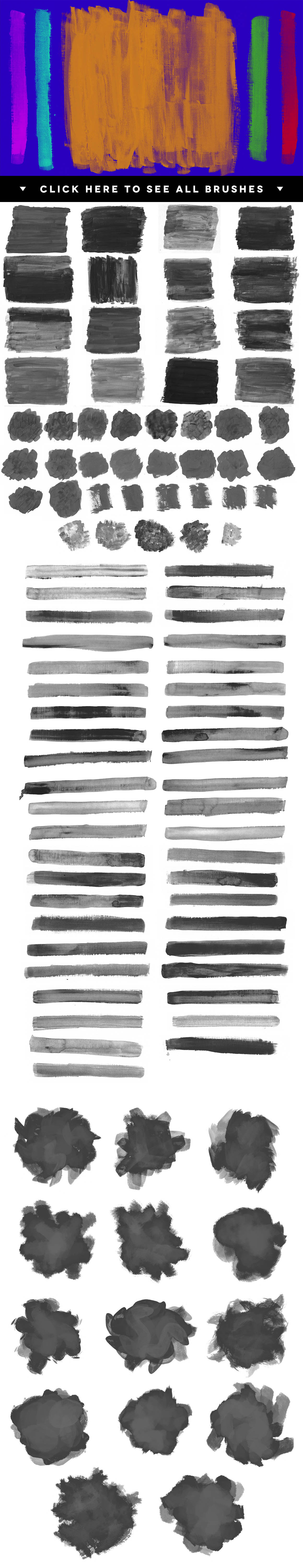 With this set of hadcrafted brushes you can create awesome masks for your photos, colorful elements for your text layers and awesome backgrounds. You can use any final product created with this set for commercial purposes (ex: create your own prints and sell it). Also in main zip. package you will find bonus psd. template with instant watercolor/oil painting effects and 10 color presets.