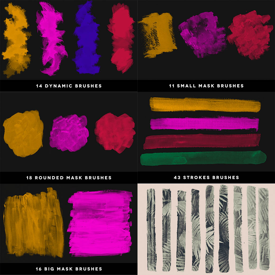 Natural Shades Brushes for Adobe Photoshop are right choice for every illustrator and graphic designer, that love texturing/painting with natural media brushes. With these pressure sensitive brushes you will add shades, textures or hand-made marks to your work easily. Just choose one of the 40 brushes and paint over your work! Brushes are in 80 – 150 px size, but you can resize them to lower size without loosing any details. With lower size you can use it as regular drawing tool! Not only for texturing, but you can paint with them! Brushes are saved as tool presets, so you don’t have to loose your time with settings. Just grab one and paint!