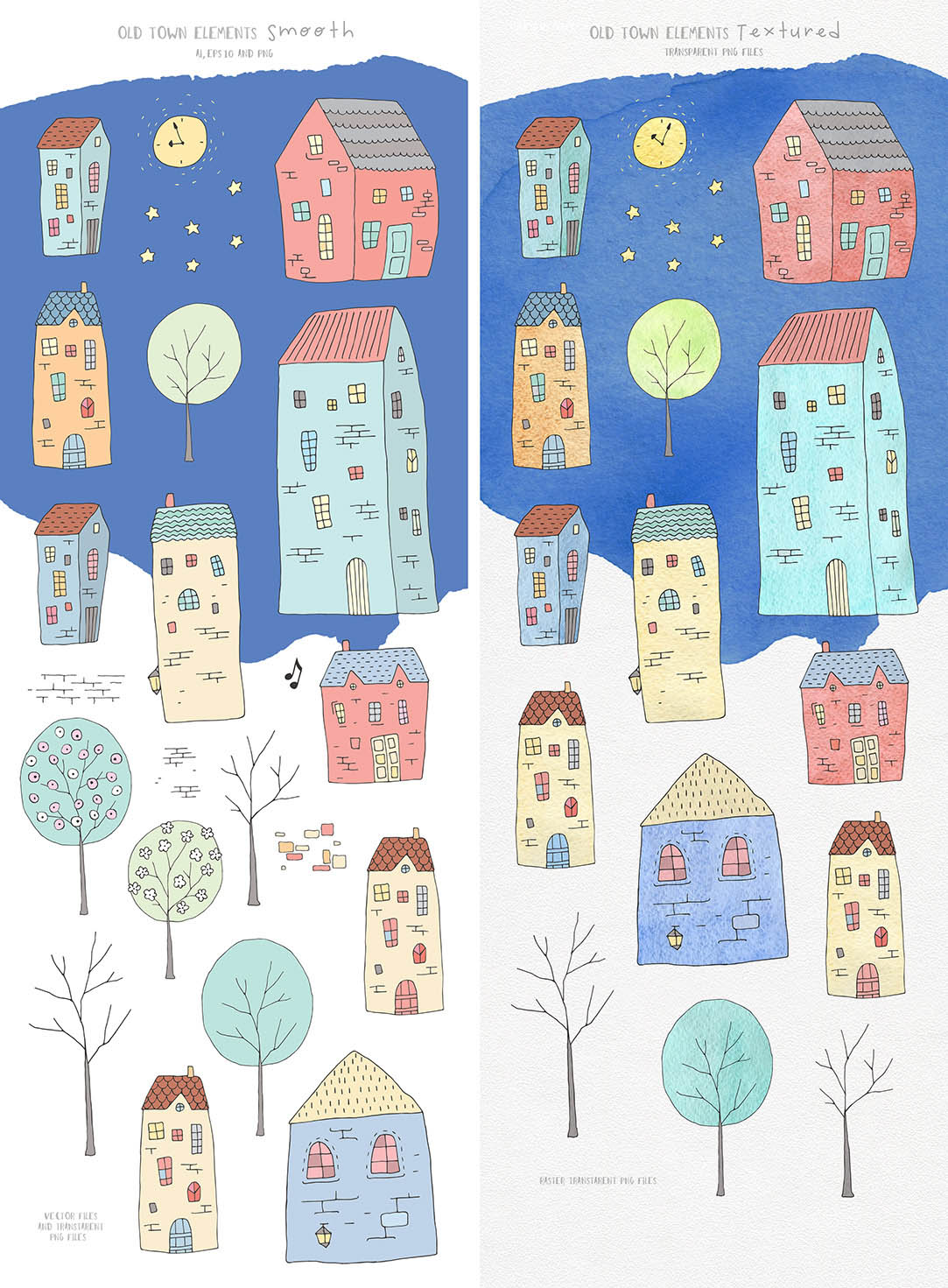- DIY old town elements (smooth&textured): 50 PNG, 1 Ai, 1 EPS