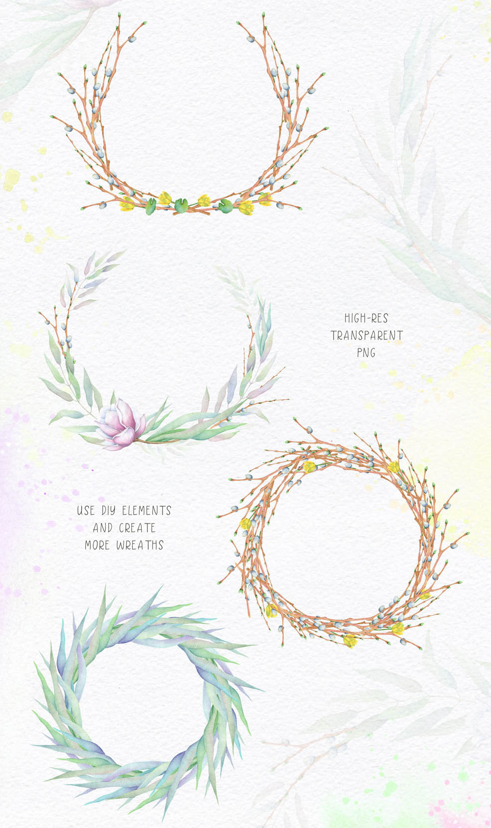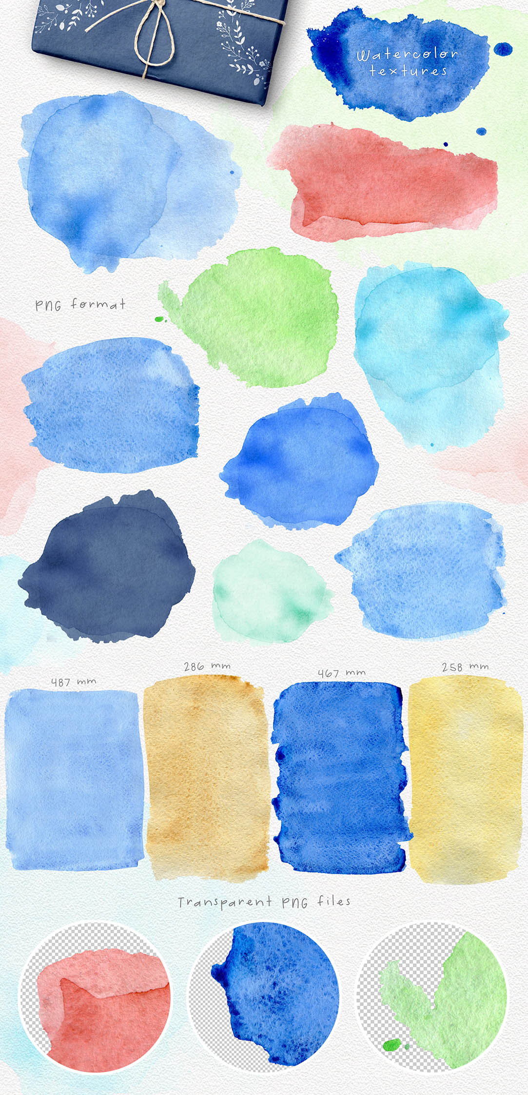 - Watercolor textures: 17 PNG
