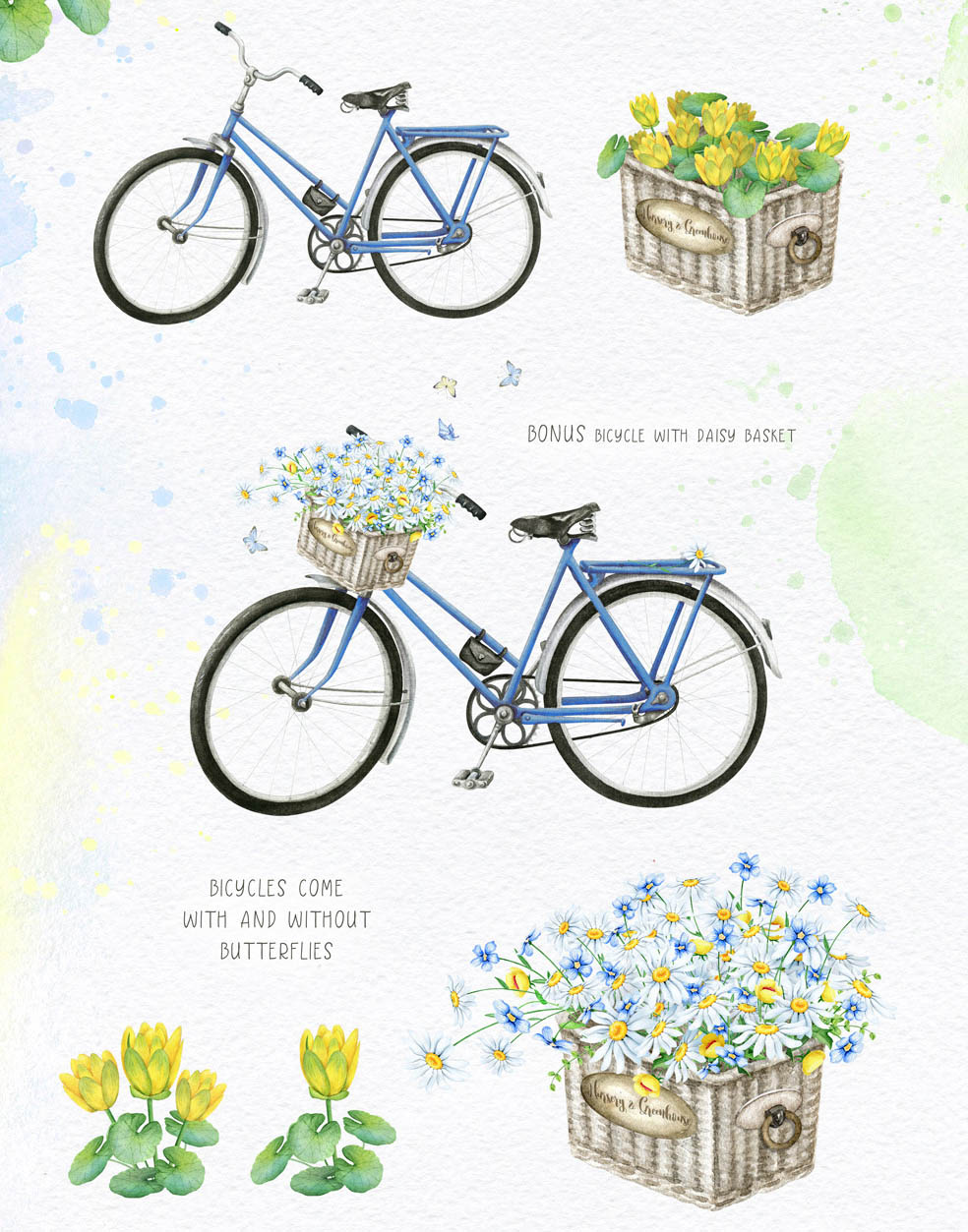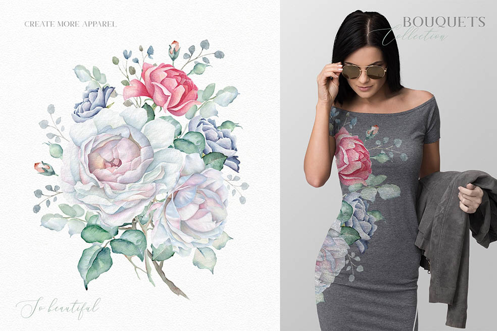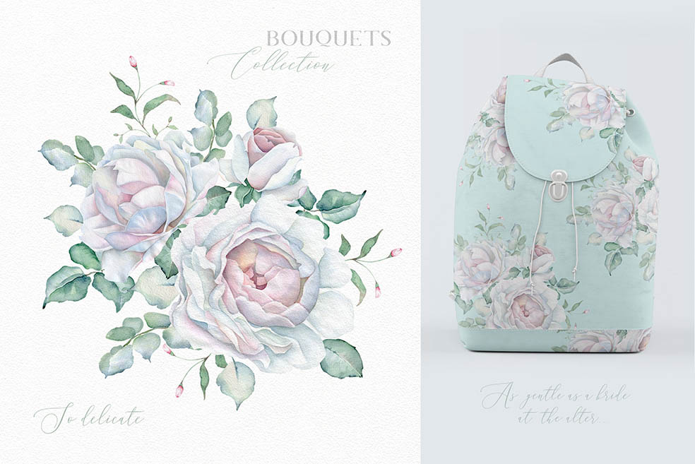 - Bouquets with Watercolor backgrounds (3 PNG, 10 JPEGs)