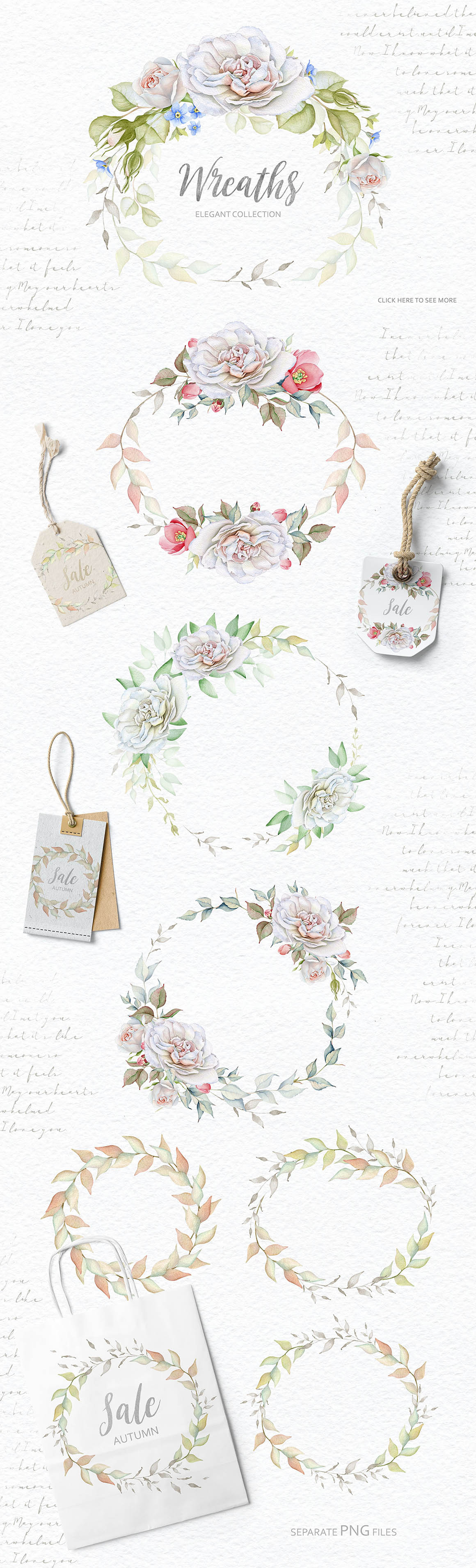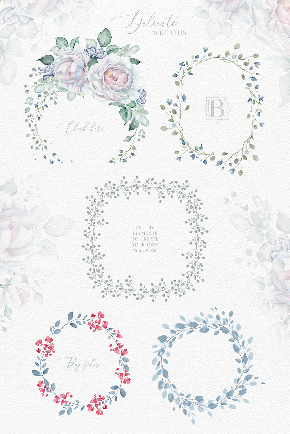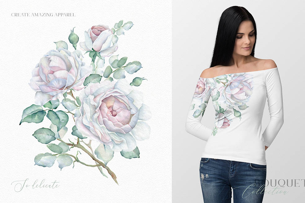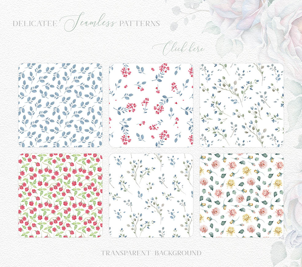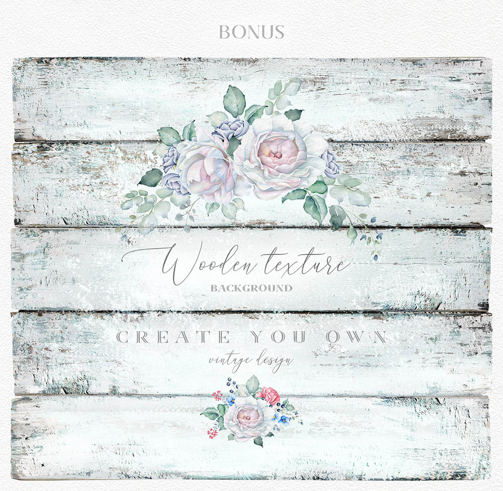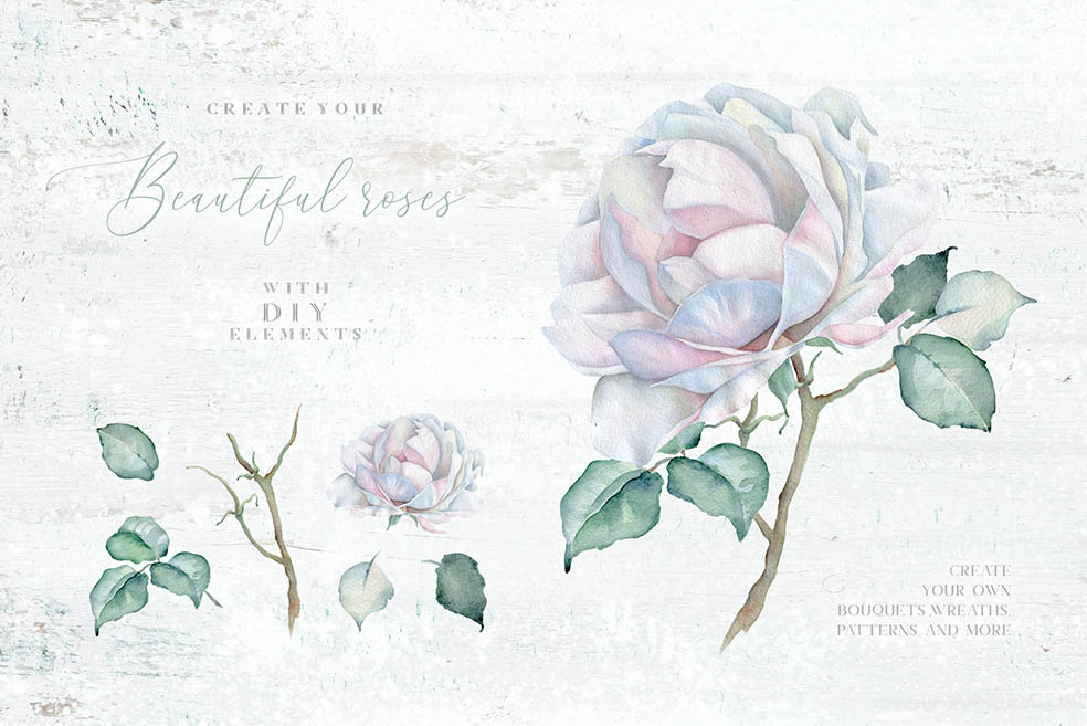 This is my new floral set for you. I’ve been trying to make it delicate. I love delicate white roses so much and I hope you love this set. There are so many flowers, bouquets, wreaths, DIY, textures, seamless patterns, pre-made cards in this collection…. 111 PNG, 16 JPEG, 1 Ai, 1 Eps_10, 1 layered PSD file (5 cards).