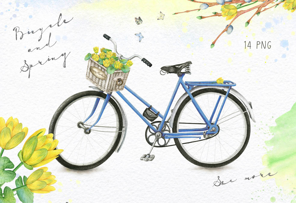 4. Spring and Bicycle Watercolors from Eva-Katerina