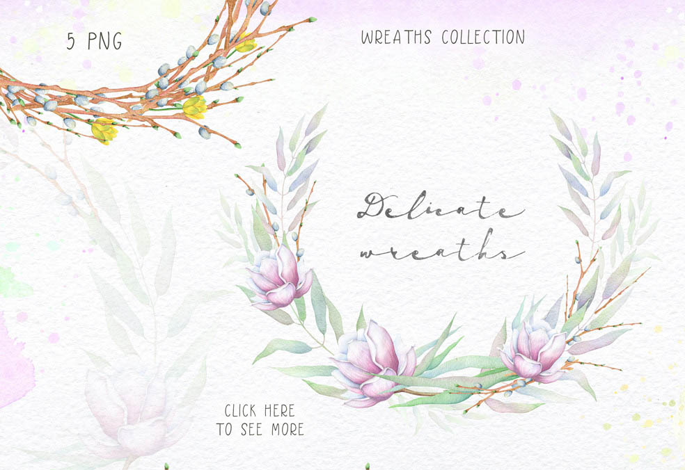 All these beautiful decorative elements are from Eva-Katerina. You can mix, cut, color change – just play with all these watercolor images and create amazing and unique designs! 😉