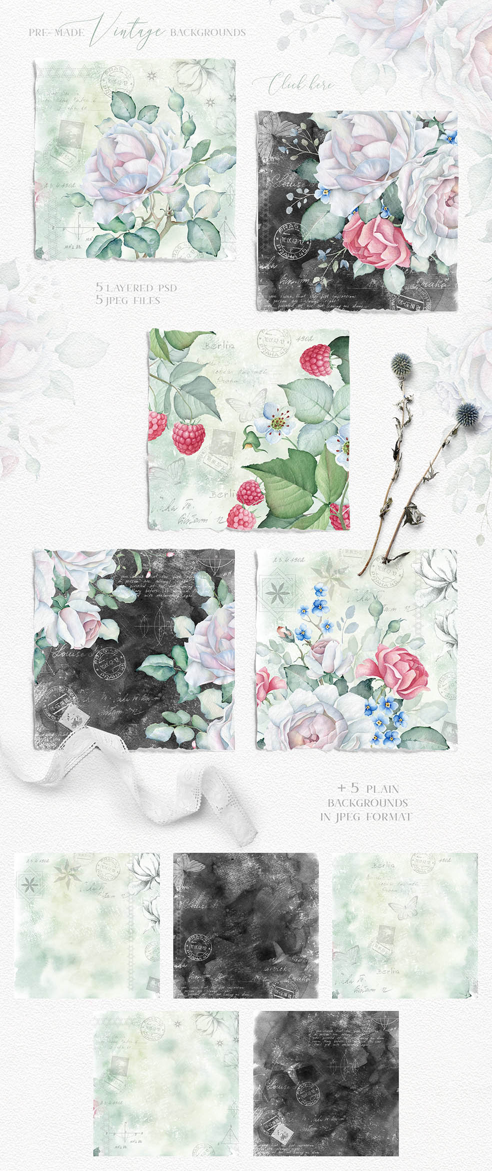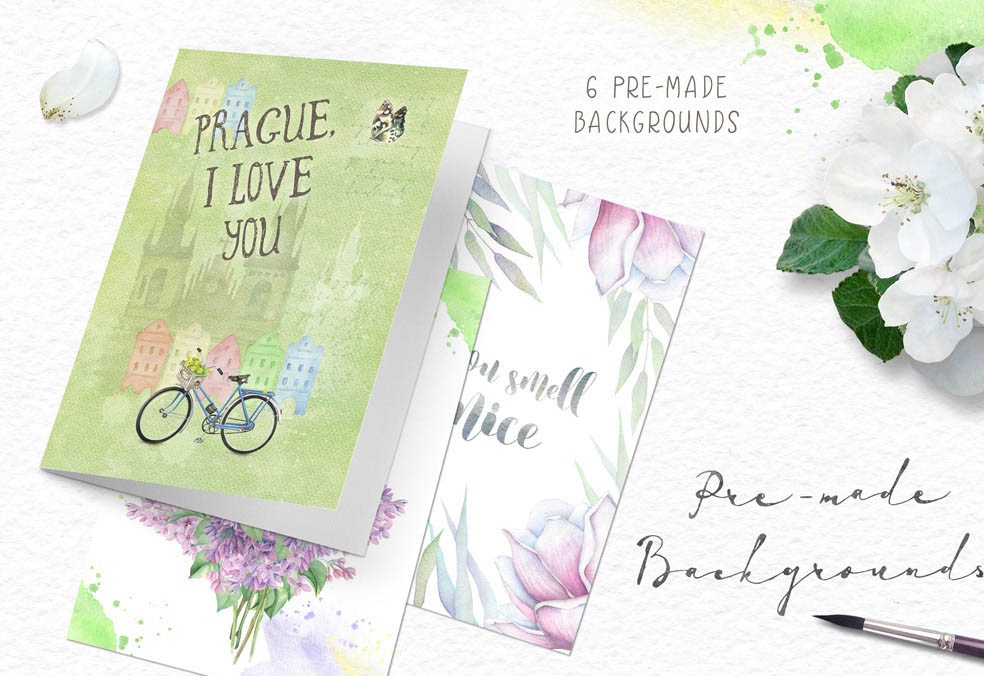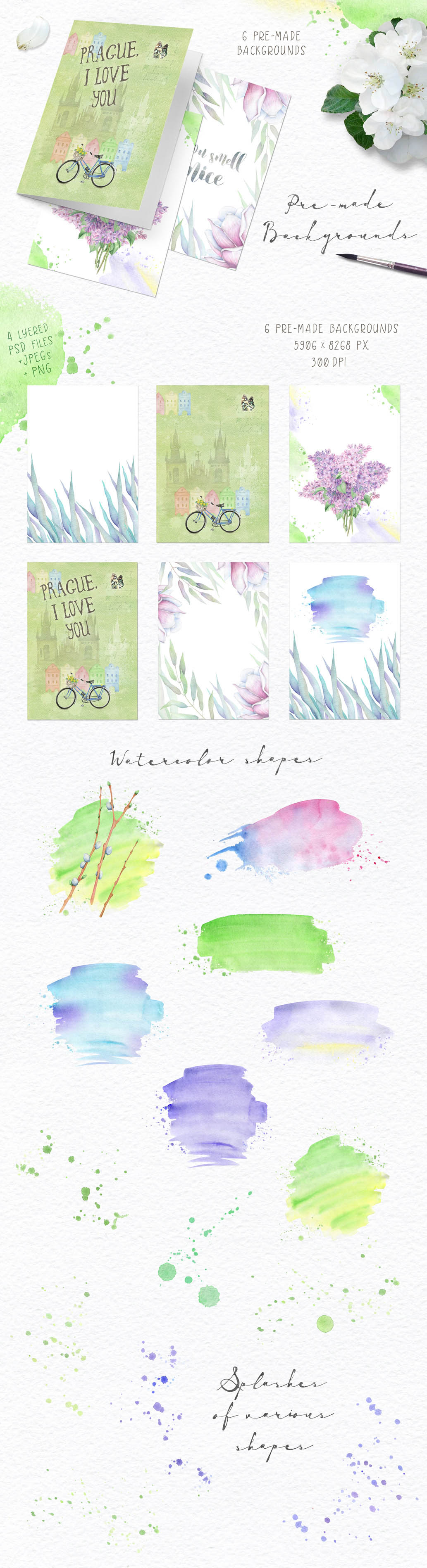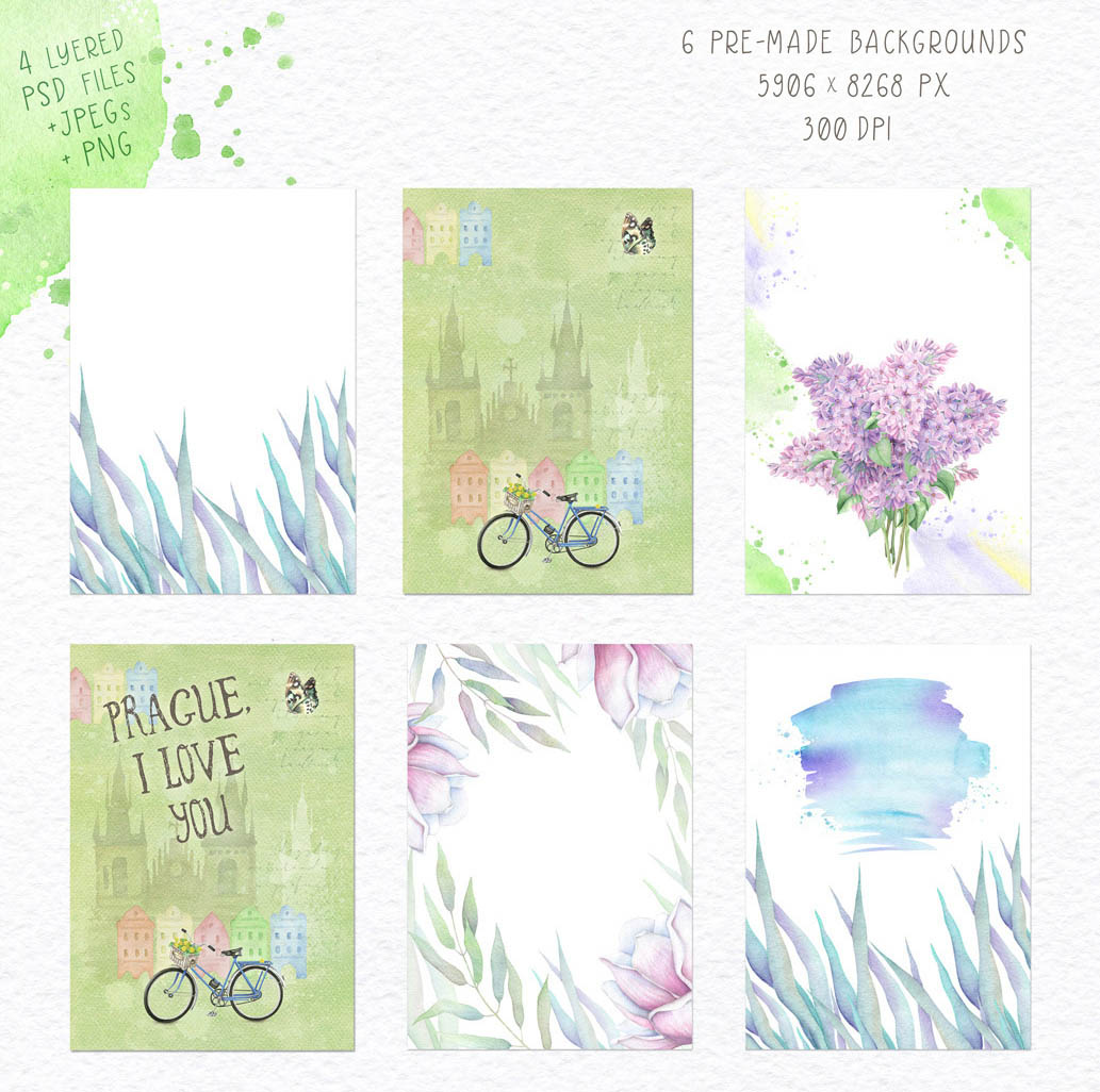 - Watercolor backgrounds (6 PNG, 5 JPEGs)