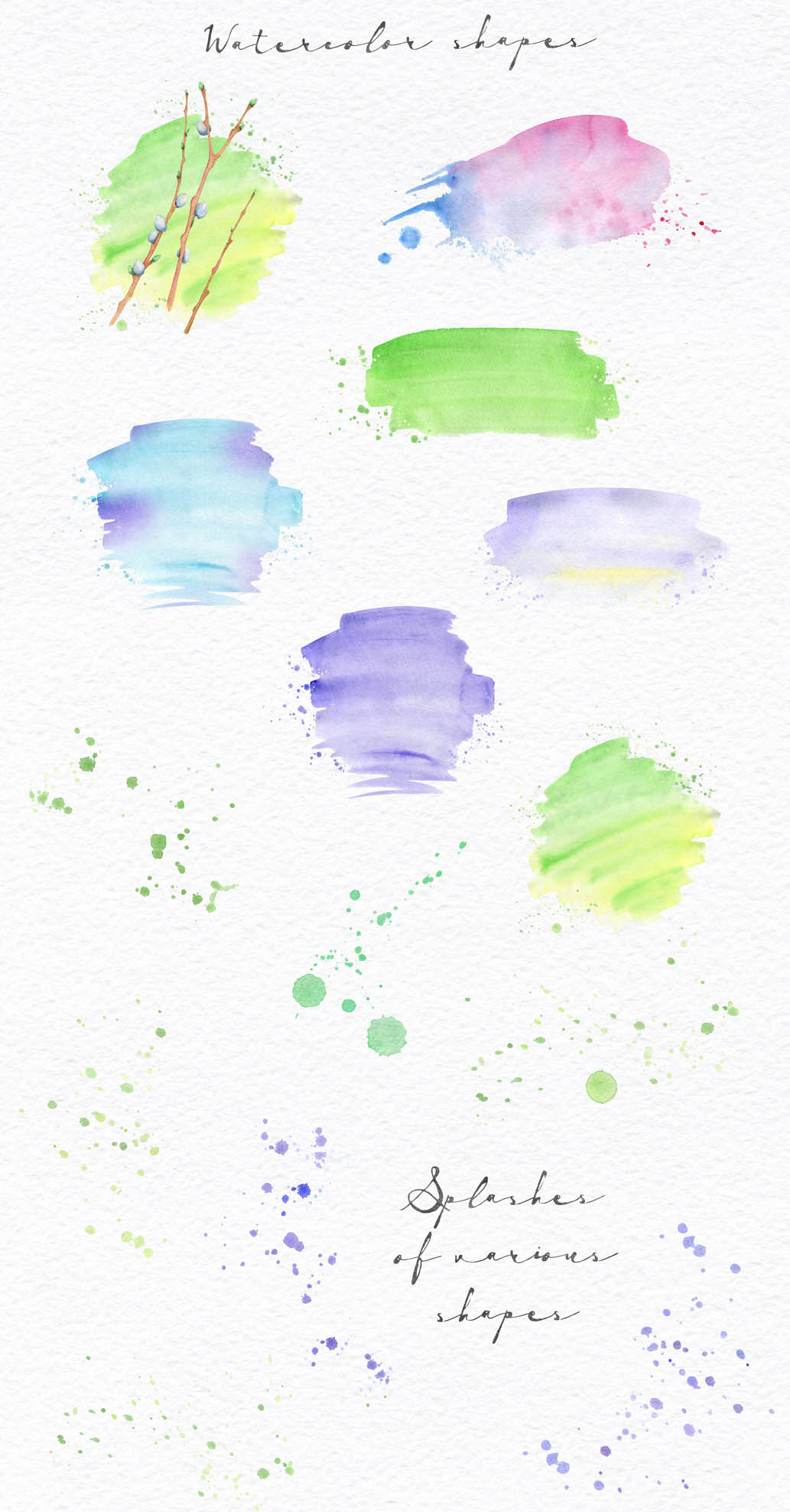 - 15 watercolor splash and shapes files (PNG)