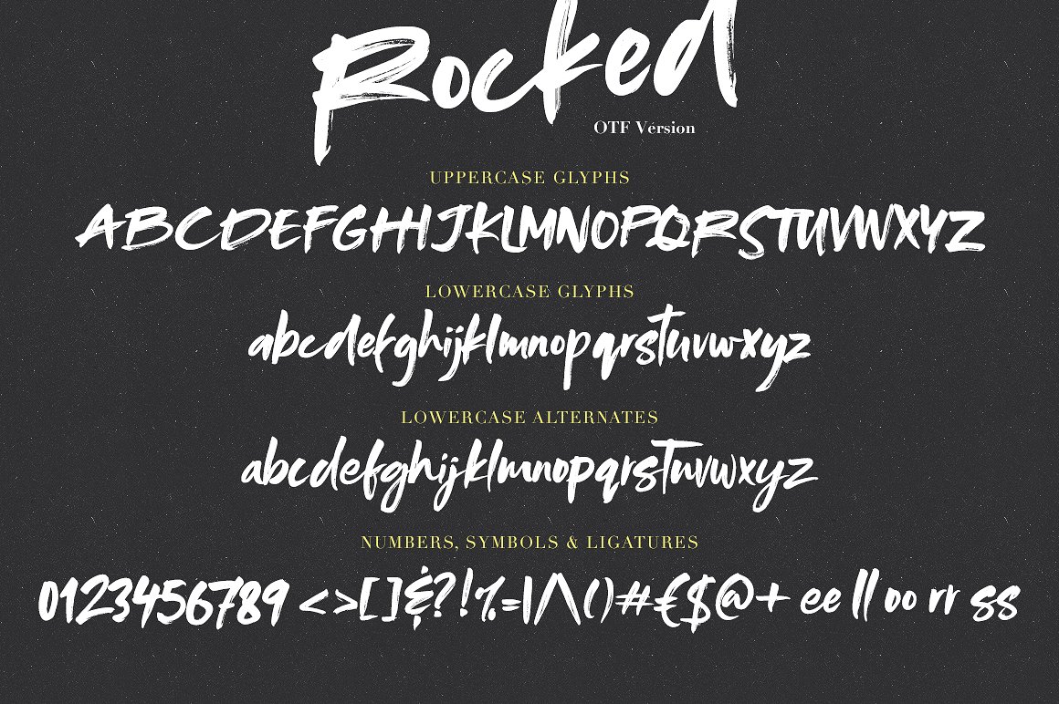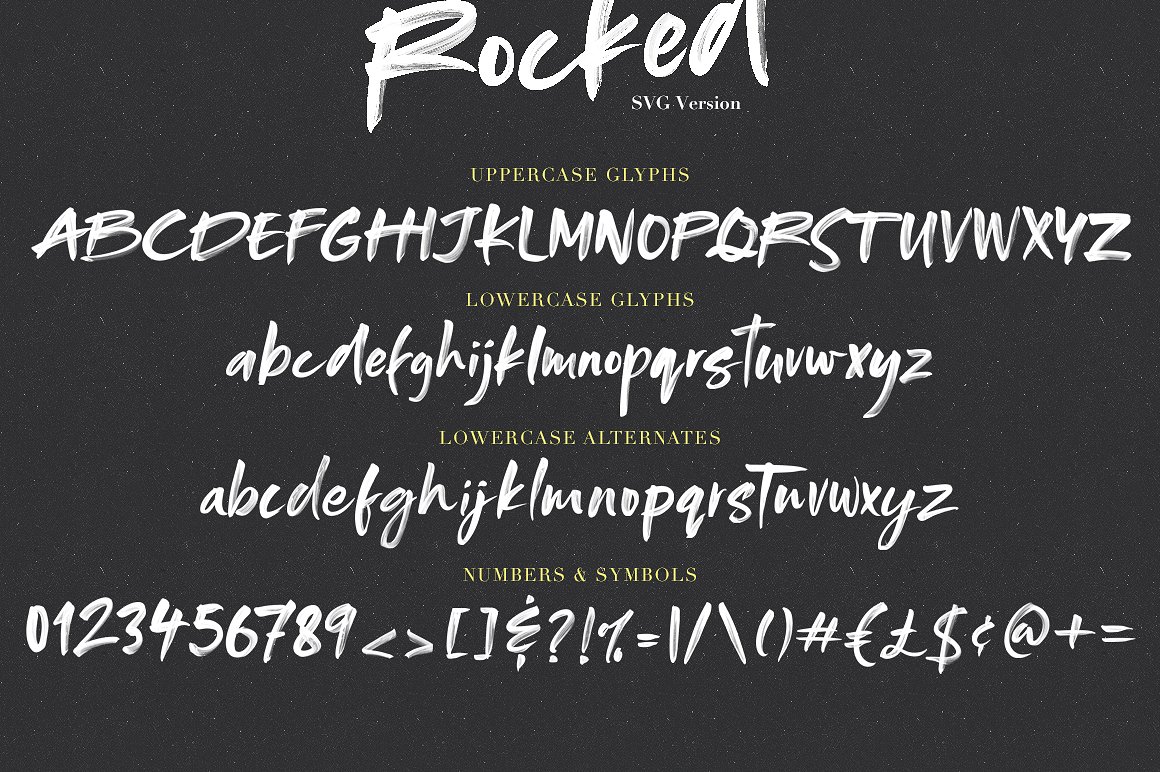 Rocked font preserves all the high definition detail of the original handwritten letters. Using OpenType-SVG technology it truly looks realistic. The OpenType-SVG format requires Photoshop CC 2017 or Illustrator CC 2018 (or newer). Regular OTF format is also included.