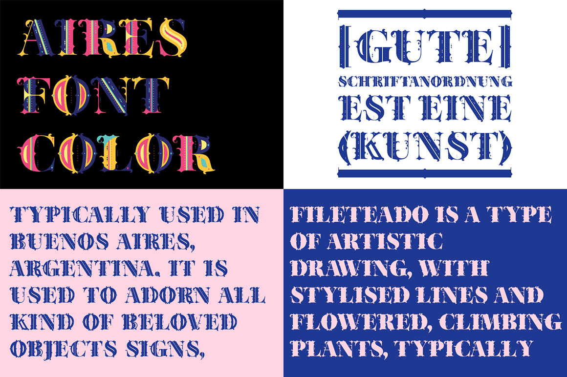 The Aires OpenType-SVG Font was designed with Fontself Maker in Illustrator CC.