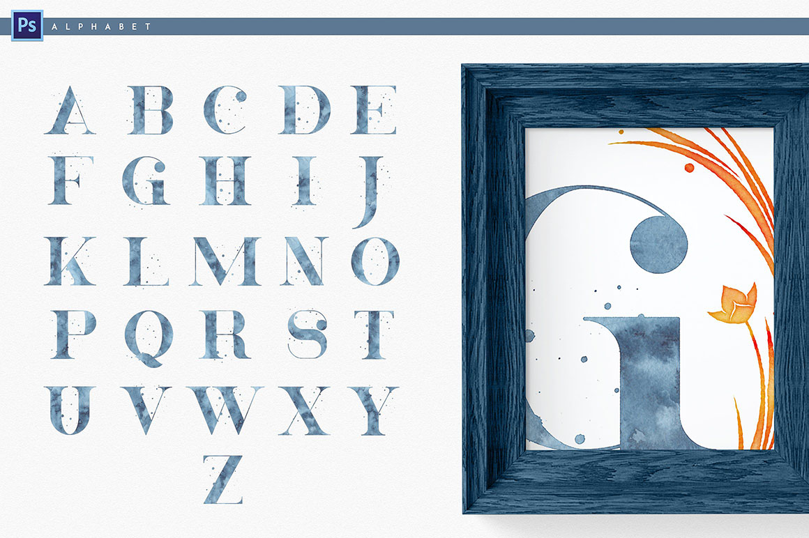 - Watercolor Alphabet with changeable colors + PNGs with transparent backgrounds