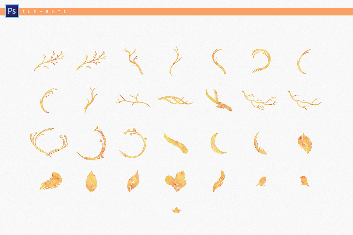 - 30 Watercolor Nature elements with changeable colors + PNGs with transparent backgrounds