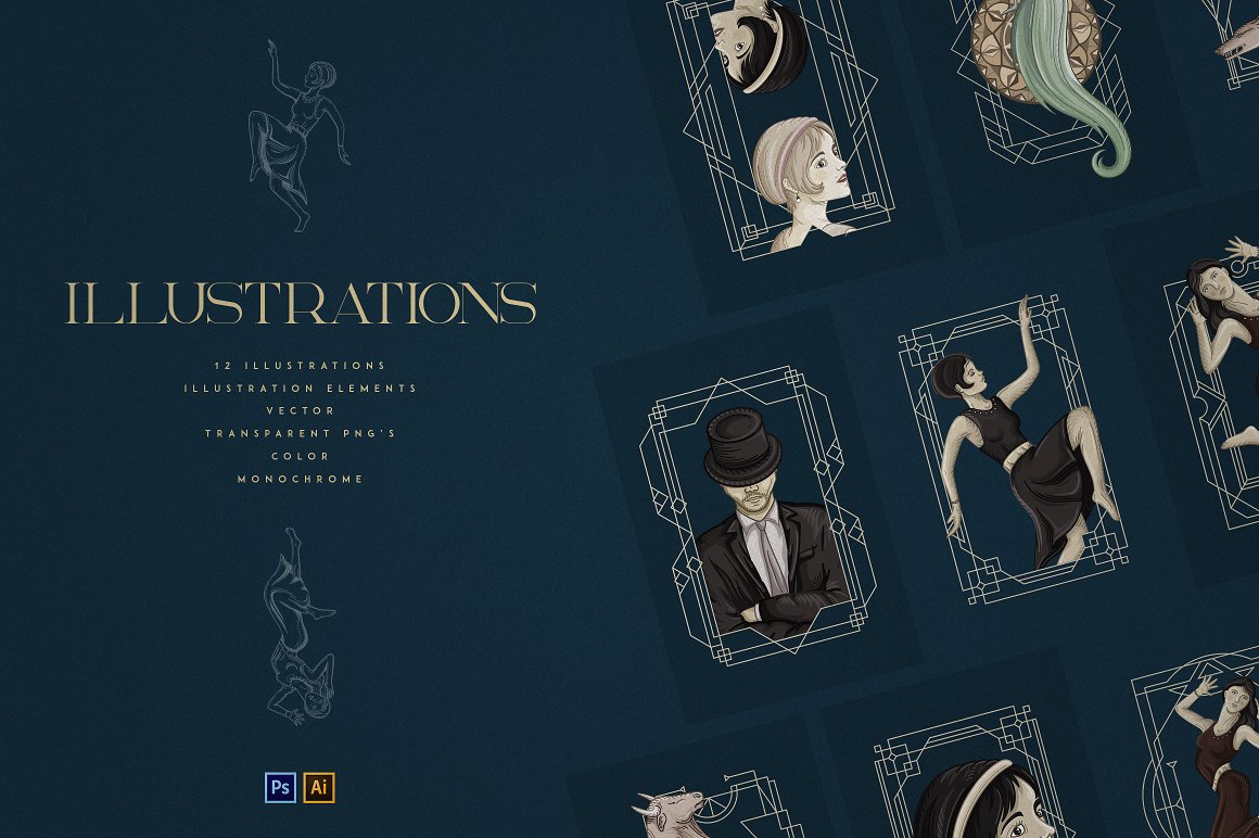 - 12 illustrations – PSD, Ai, EPS and 12 transparent PNGs