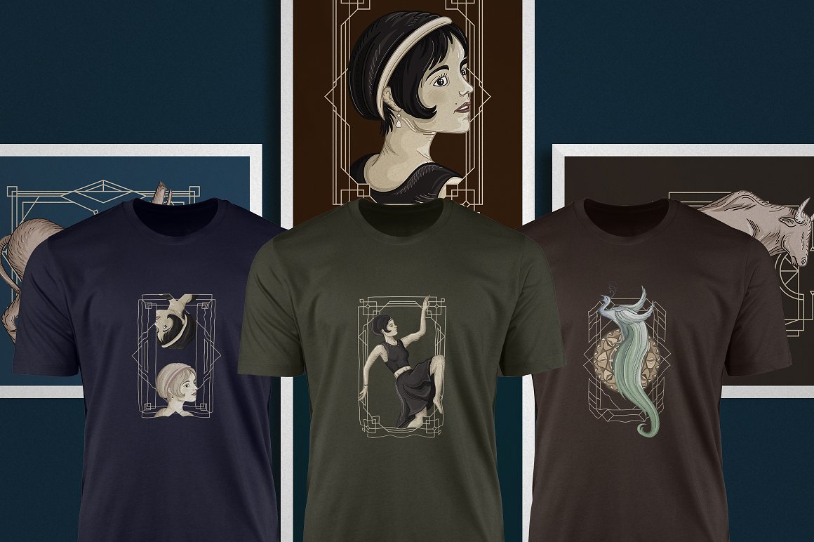 Custom crafted 12 illustrations. They look perfect on walls, t-shirts, clothes and they are perfect for your next logo design or branding project