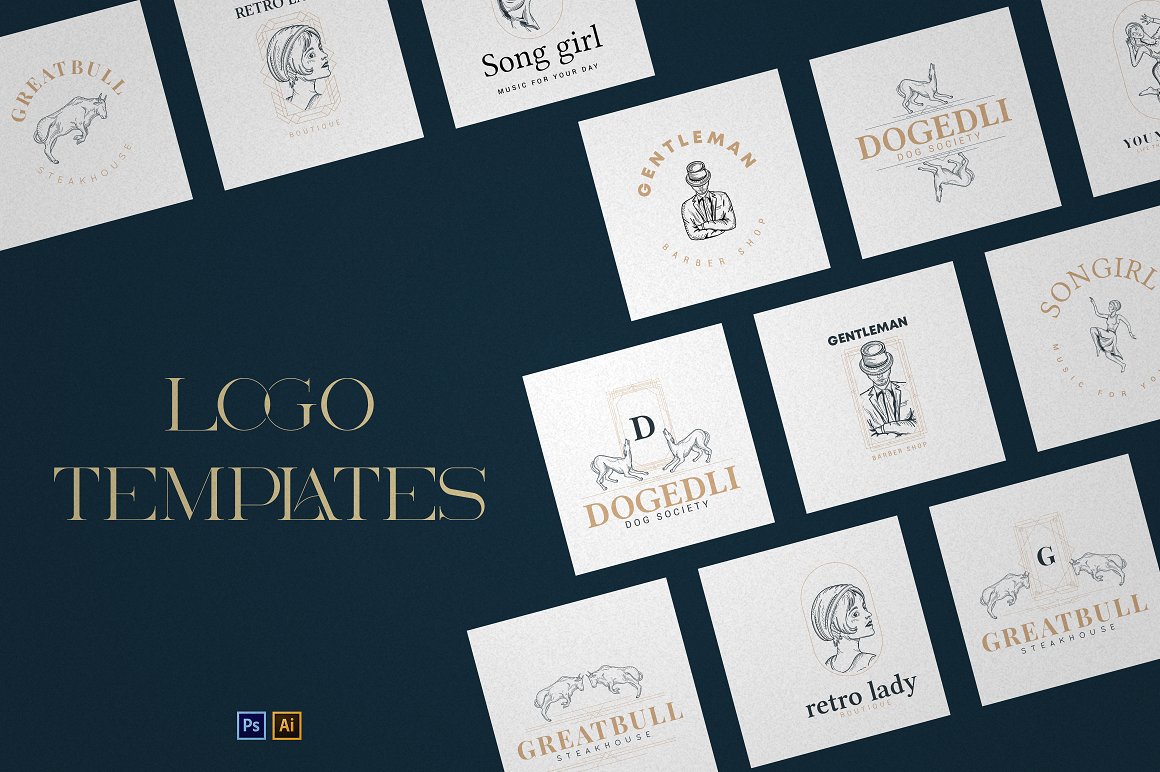 Brand new vintage branding style typography & graphics bundle with 13 multilanguage display fonts, 12 illustrations, 35 frames, 25 corners, 27 dividers & 32 vector logo templates! All these fonts & graphics are decorative & unique so you can use it for any retro of modern branding projects or T-shirt designs 😉