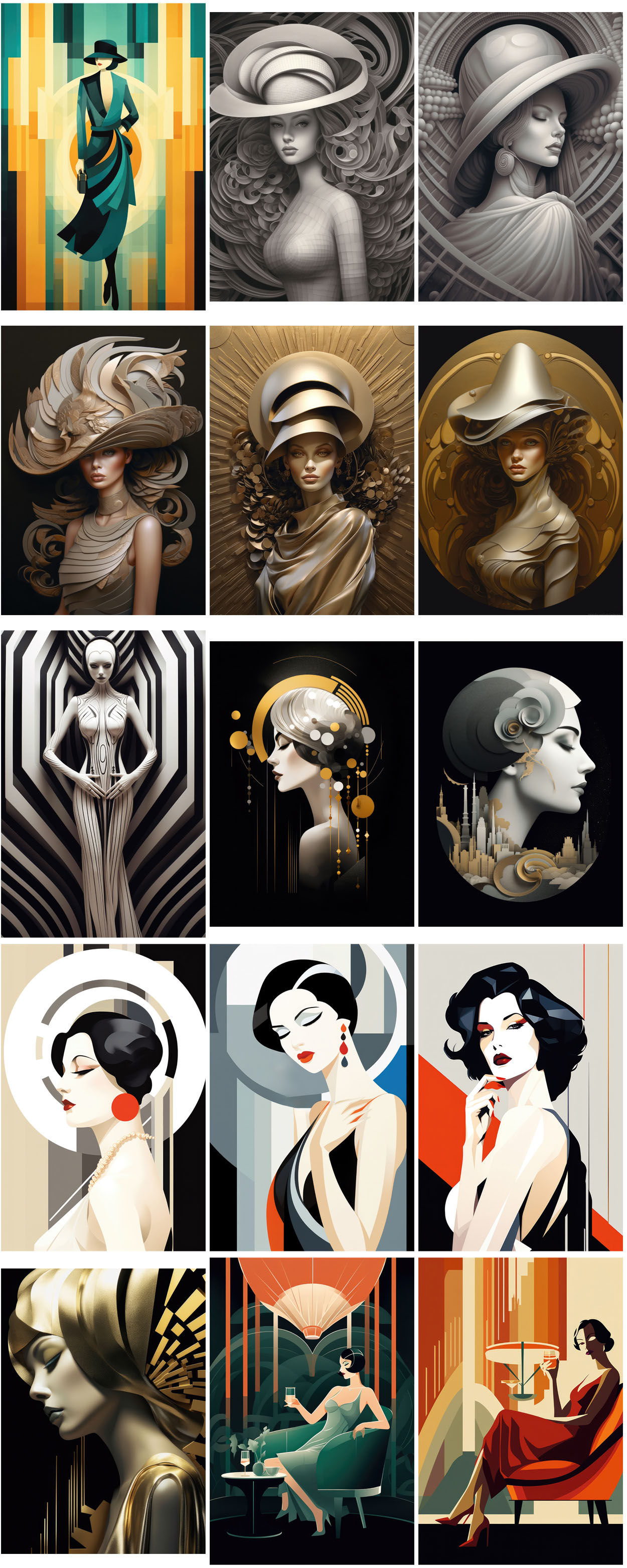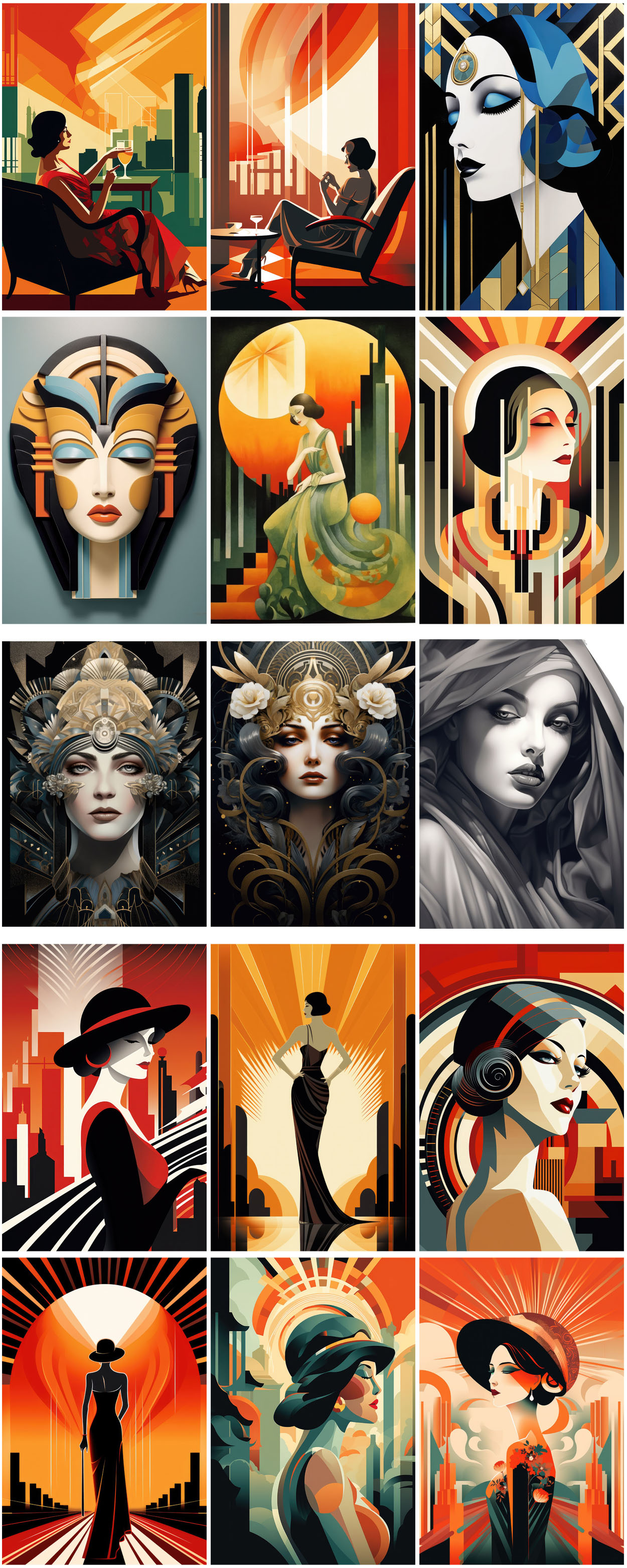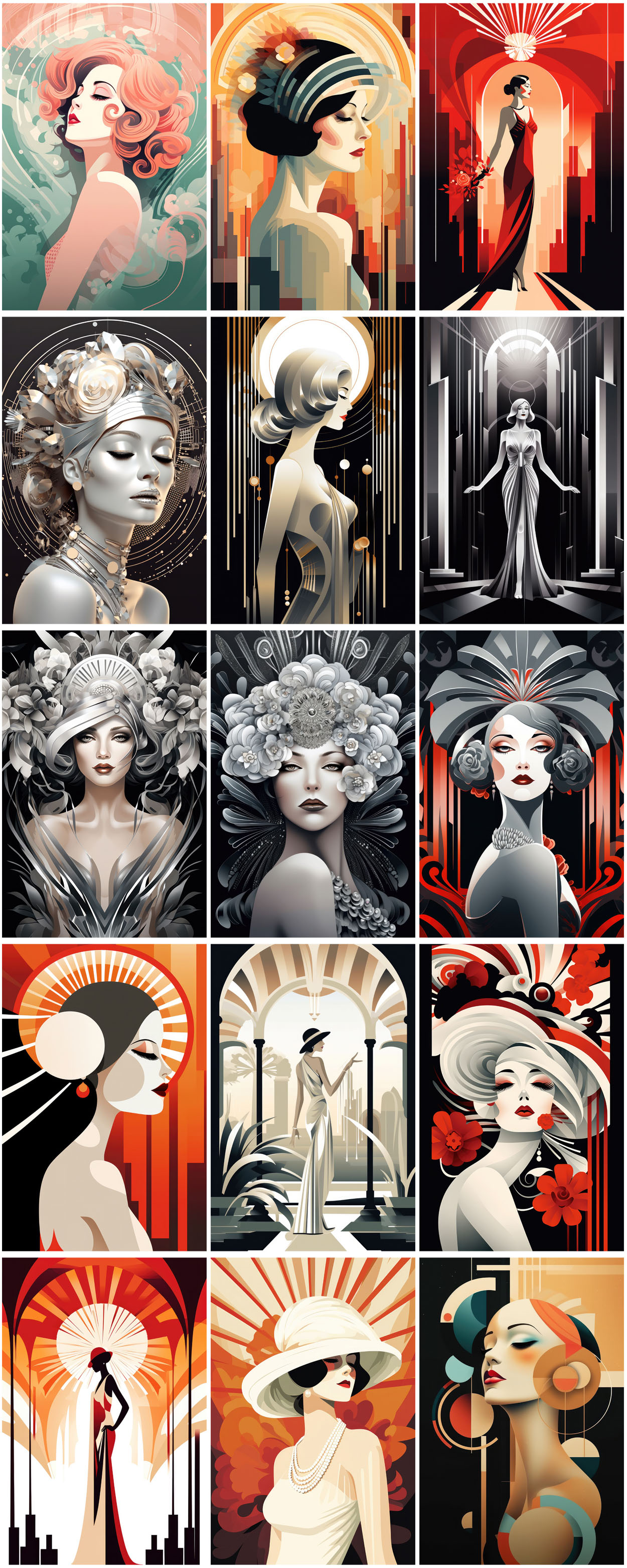 - 180 art deco woman illustrations – Ai generated digital illustrations for your new T-shirt, card, poster or sticker designs!