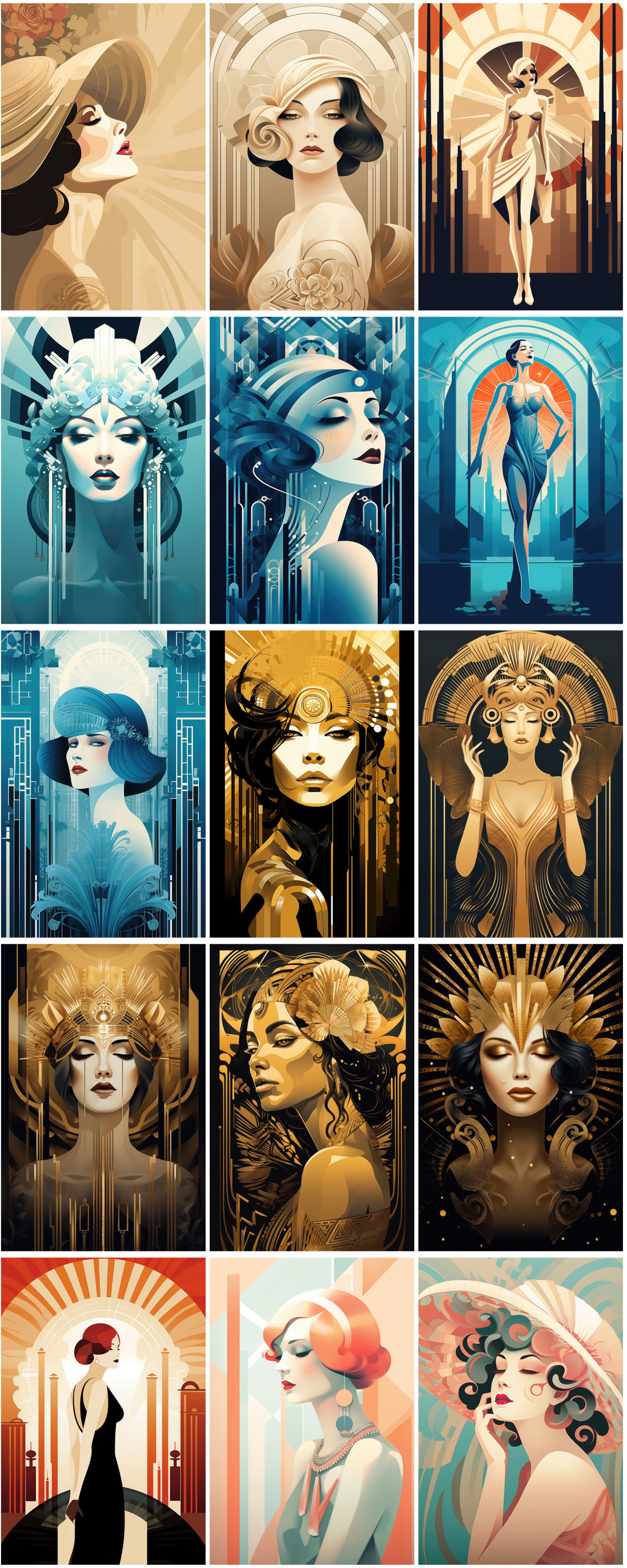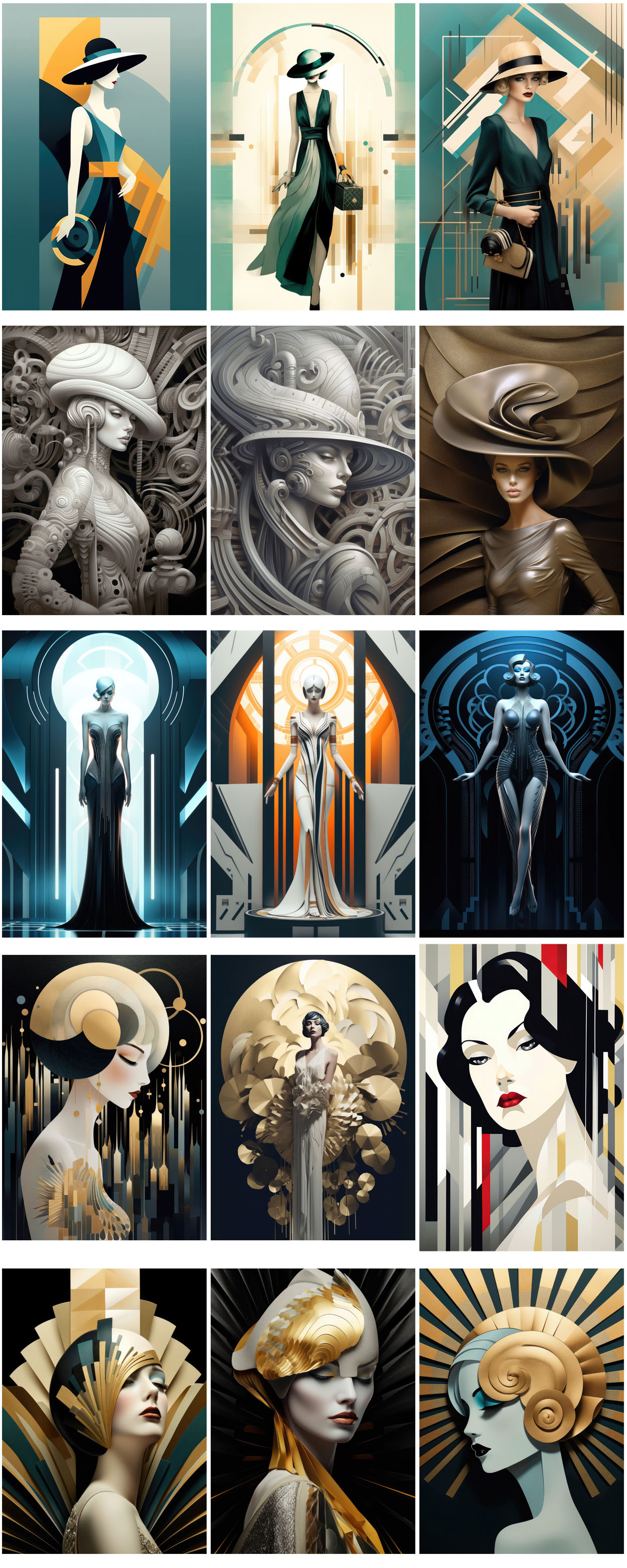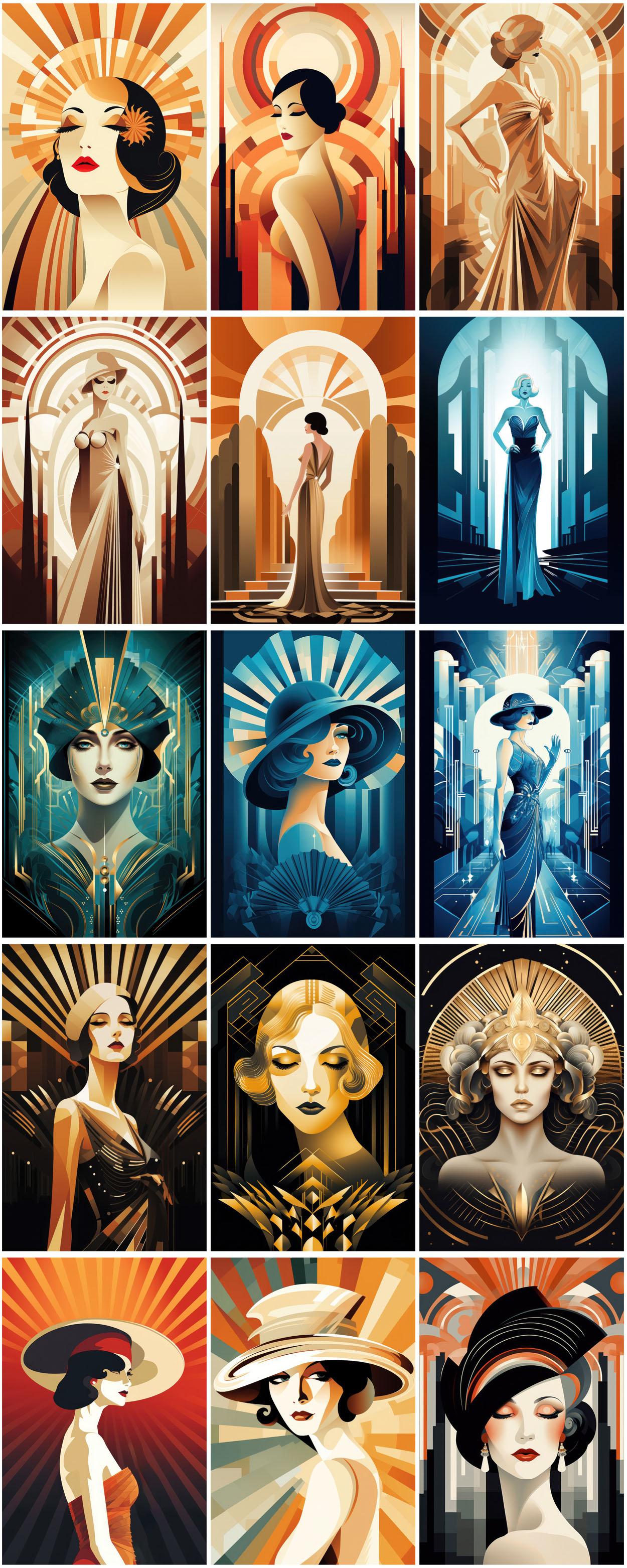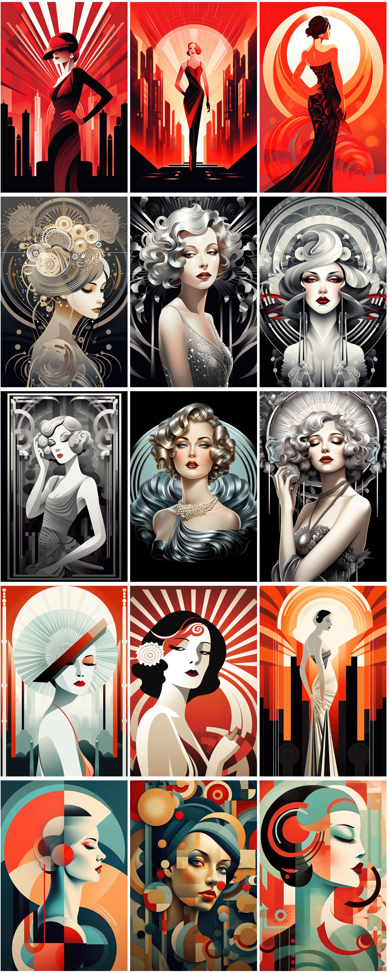 - 180 art deco woman illustrations – Ai generated digital illustrations for your new T-shirt, card, poster or sticker designs!