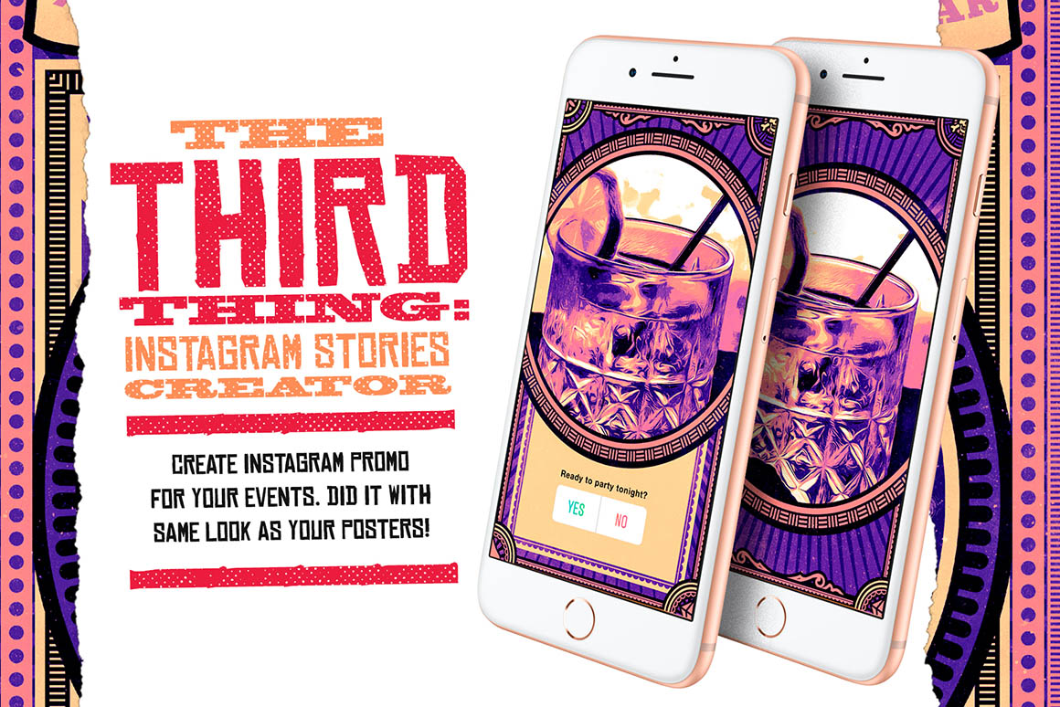 - Of course to promote your events you need to use Instagram. With Stories Creator you can also repeat your main graphic style of event in Social Media. No matter what exactly you have – Rock Gig, Cocktail or Dance party, New presentation or Birthday Party – you’ll be grateful to the creator which one make your stories a stylish